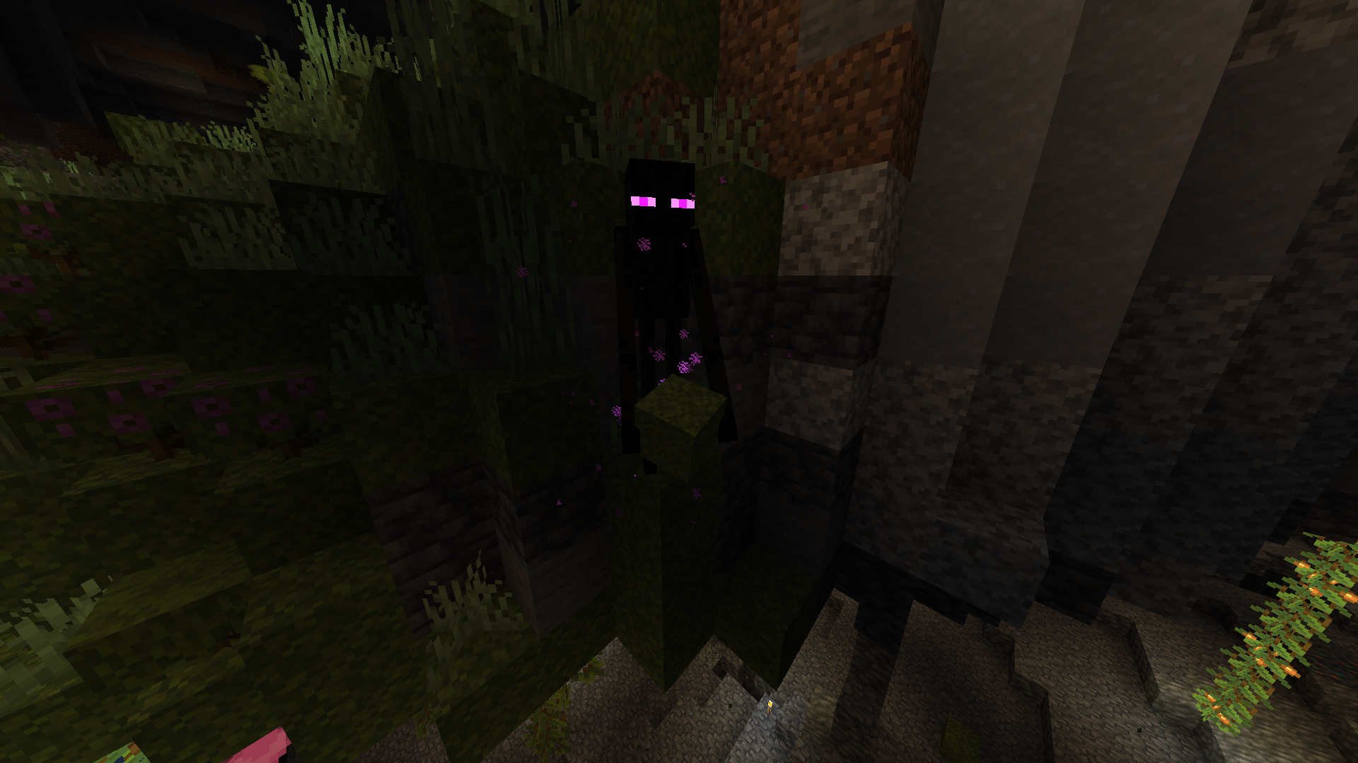 Endermen never teleport when they are in the dark, so if one is stuck on a ledge or in a hole holding a block they never despawn unless a player interacts with them.