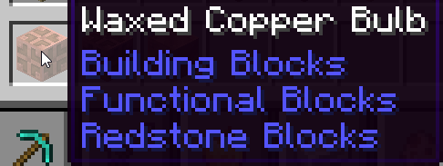 The copper bulbs (any oxidation level) are under Building Blocks tab, but the waxed copper bulbs (again, any oxidation level) are under Building, Functional, and Redstone tabs.