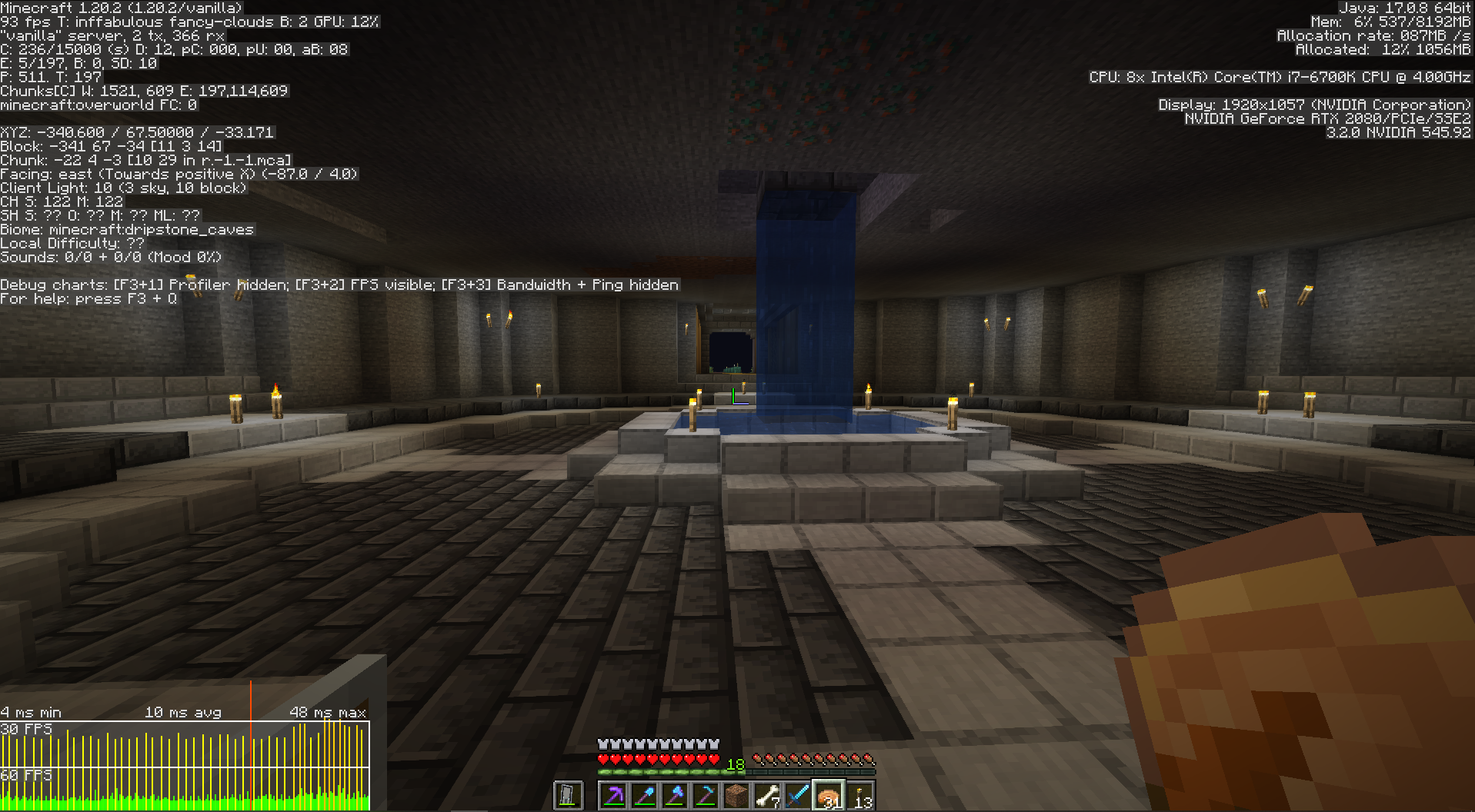 Regardless of version, settings, or world, I am experiencing constant spikes in frame time, resulting in being unable to reach a stable frame rate.