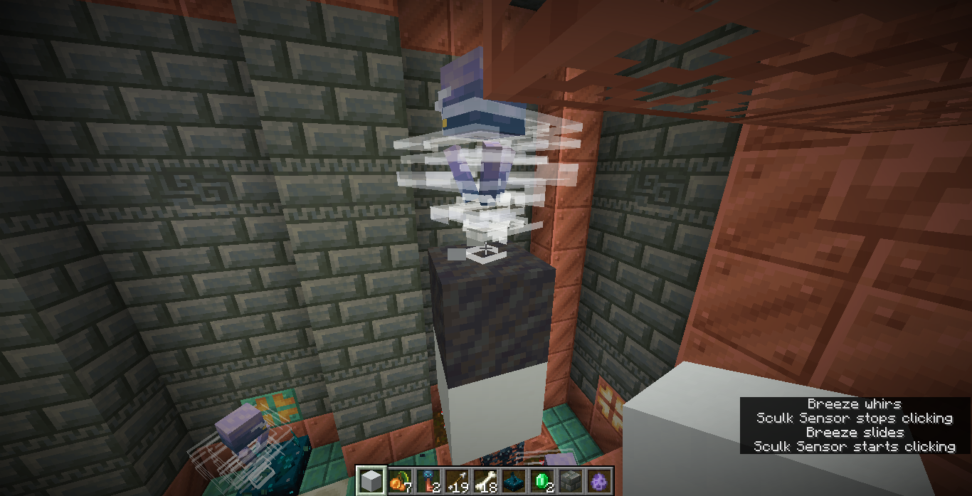 (Notice the correct sculk particles, and lack of particles for the floating Breeze)