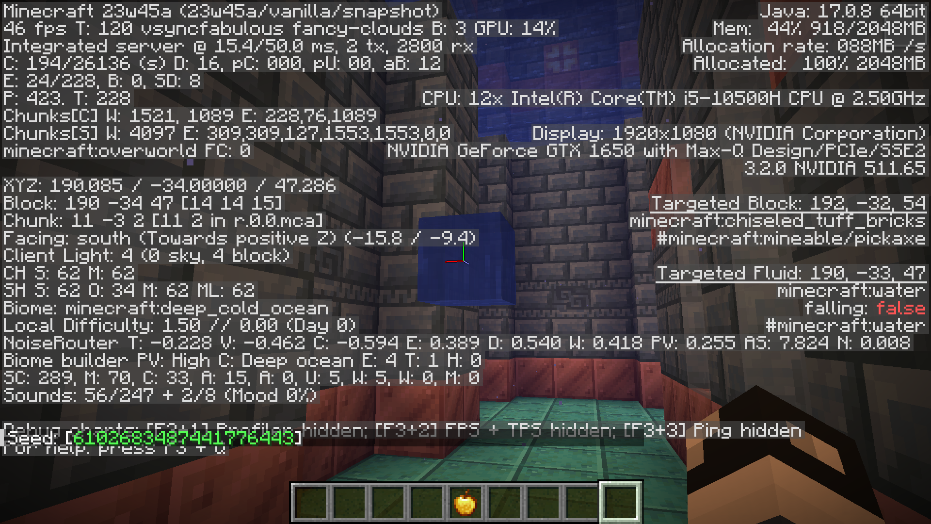 To reproduce, use the seed -1916179195248682850 and run the following command: