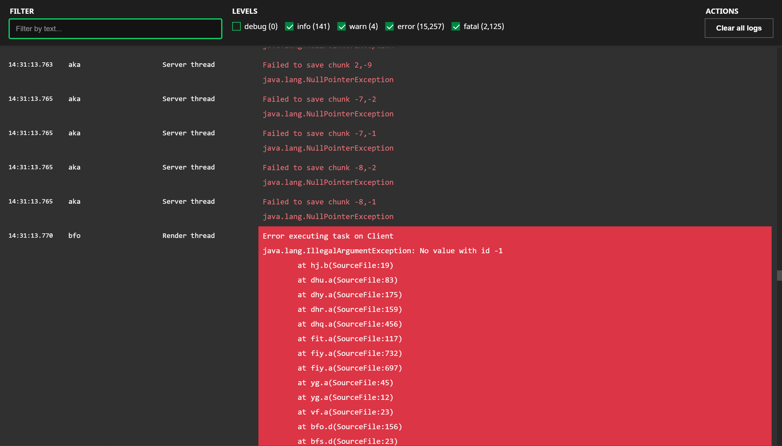 java.lang.NullPointerExceptionFailed to save chunk 6,-1