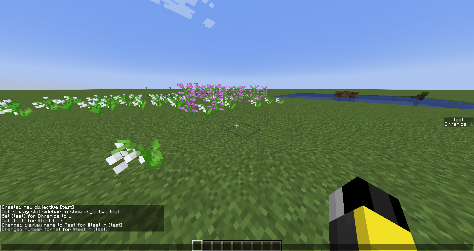 /scoreboard objectives add test dummy/scoreboard objectives setdisplay sidebar test/scoreboard players set @s test 1/scoreboard players set #test test 2✔ Notice how the fake player is not displayed