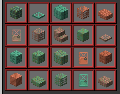 The recipes for the other waxed copper blocks are grouped together, where the recipes for the new ones are not