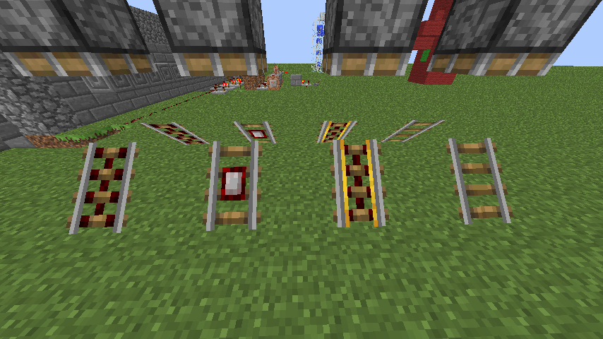 Using sticky pistons, minecart rails can be ''elevated'' or put into the up-going position. It works on any type of rail, as long as the middle one is a regular one. For example, imagine a view from above; powered rail - rail - detector rail.