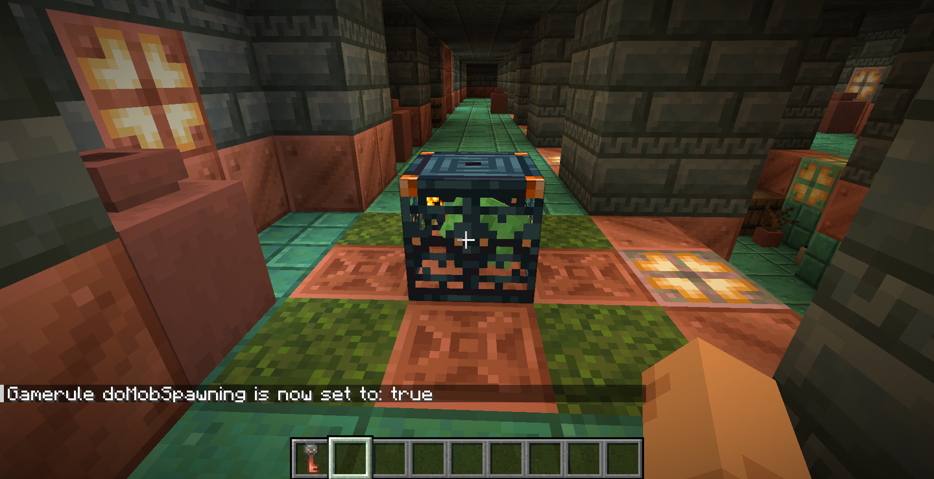 The doMobSpawning gamerule controls whether mobs spawn naturally based on the global spawning logic, but does not affect special spawn conditions like monster spawners, raids, etc.. Since trial spawners function in a somewhat similar fashion to normal monster spawners, it is supposed to be considered as a special spawning attempt, thus, being able to function regardless of the doMobSpawning gamerule setting, but it is not the case. The attached image where the gamerule is set to true shows that the trial spawner is active and can spawn mobs, whereas the other attached image shows the trial spawner being disabled as the gamerule is set to false.