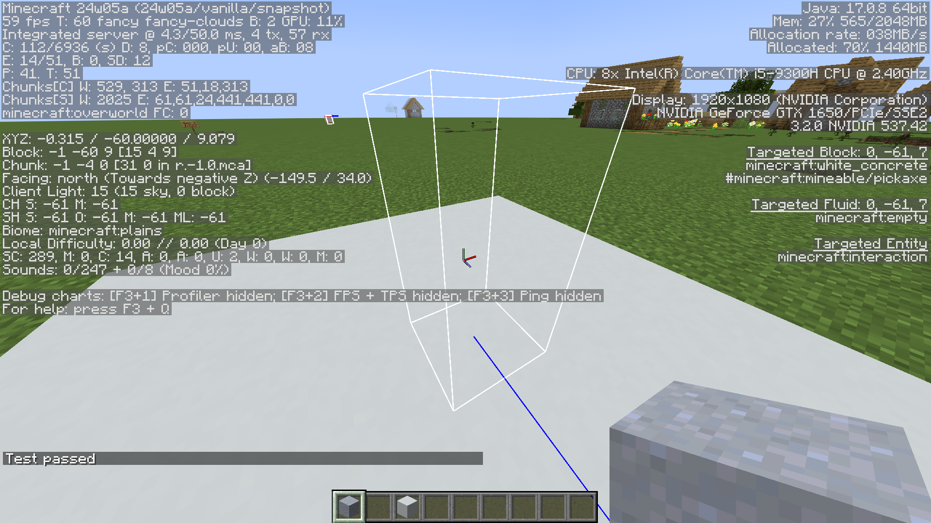 When using a predicate with looking_at and type=interaction (see joined json), the test does not pass when a solid block is on the same block than the "root" of the entity (see pitcures).