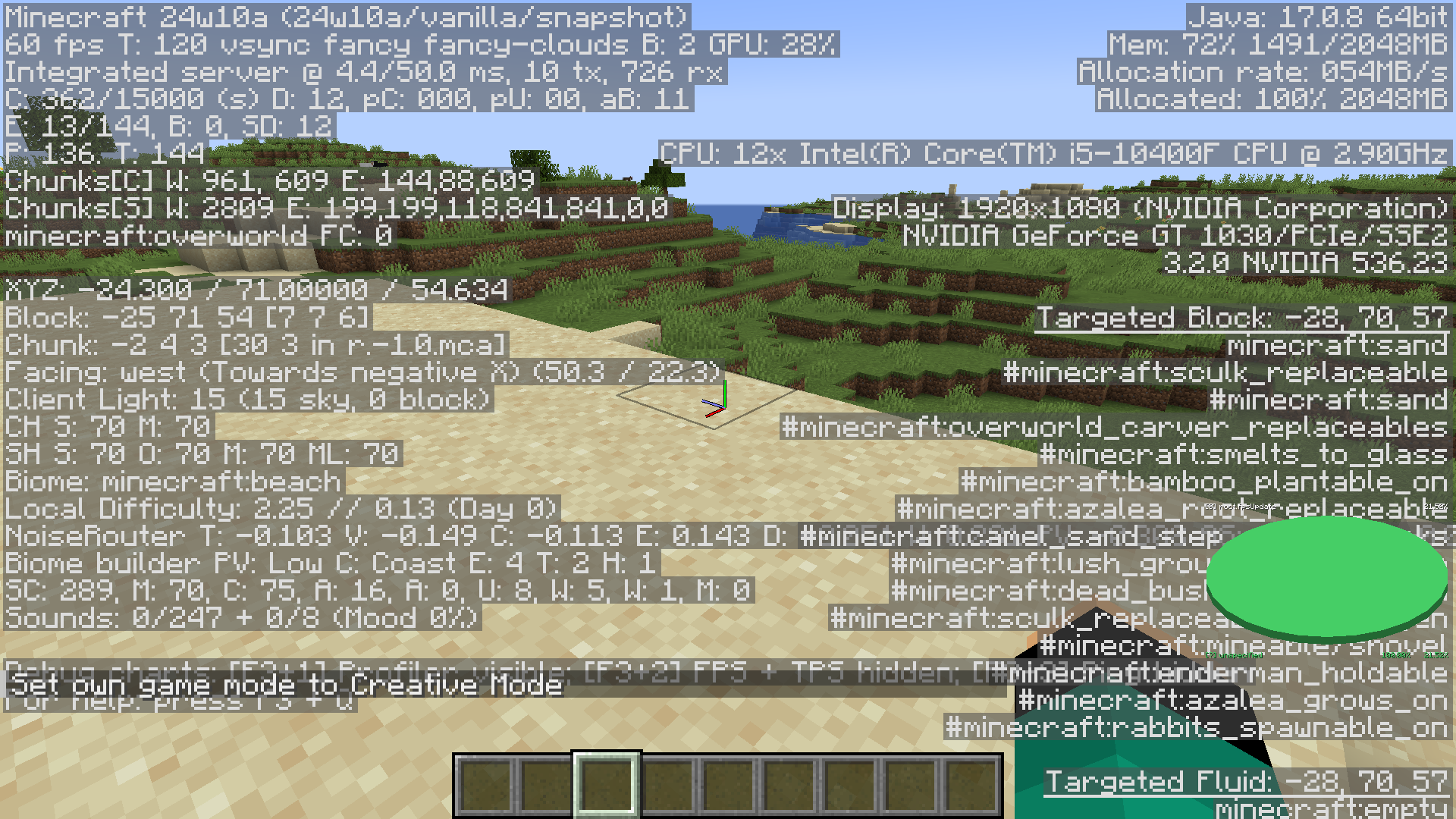 A Plains biome covered with beaches in the centre