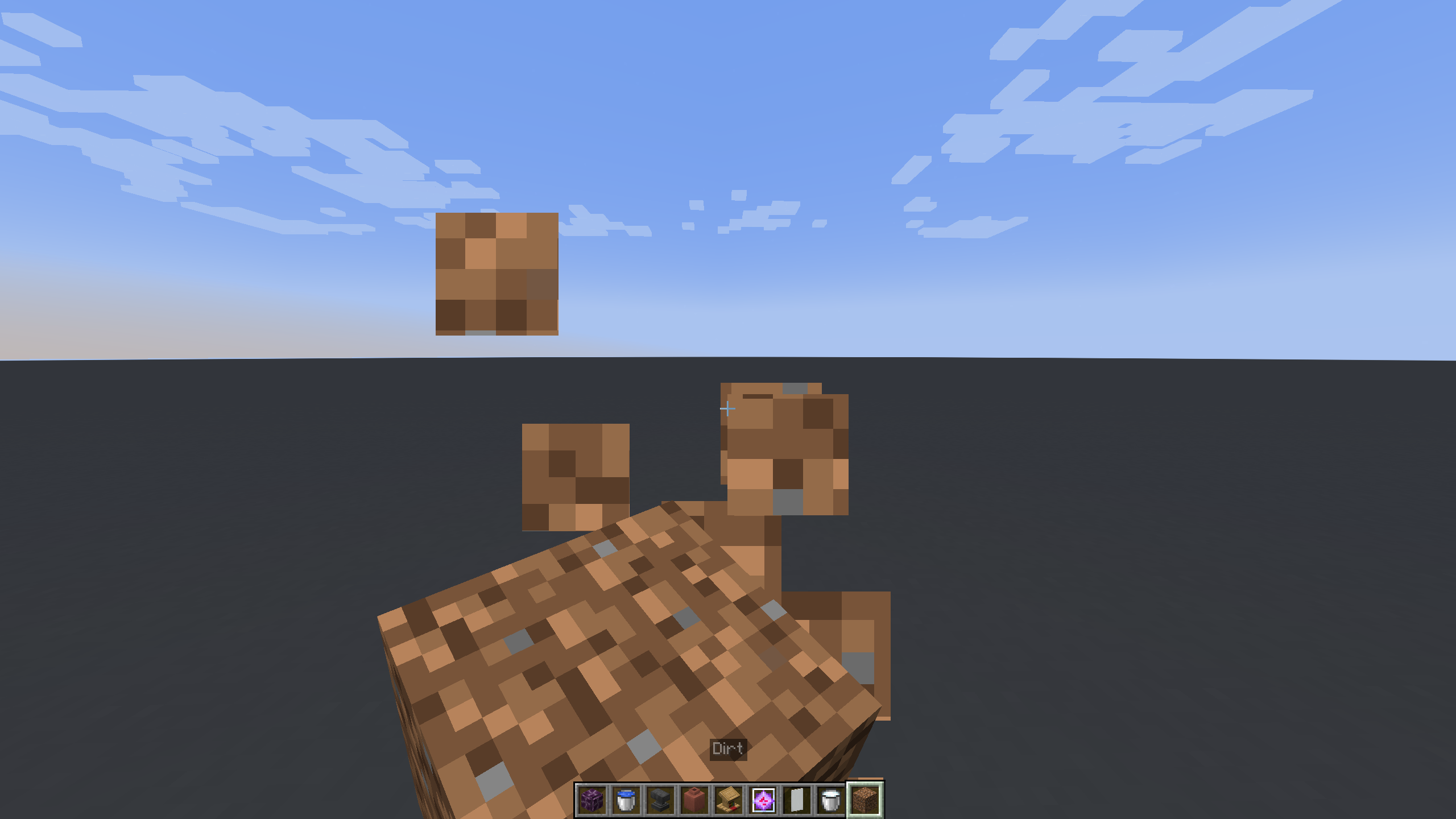 /give @p dirt[minecraft:food={nutrition:1,saturation_modifier:1}]/give @p dirt[minecraft:food={nutrition:1,saturation_modifier:1}]→ ❌ Item is consumed as expected, but the animation is played offset to the lower left of the screen.