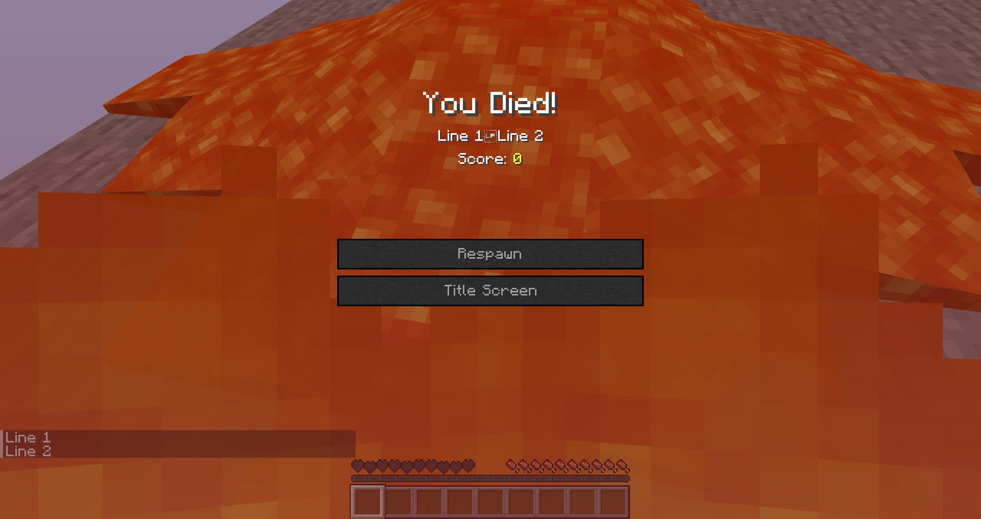 Using \n to display death messages doesn't create a new line on the death screen. However, it functions properly in the chat. Relates to MC-269671.