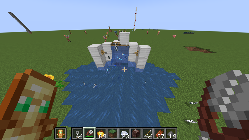 When the player break a tripwire with a shear, the tripwire do not break, you must need break the tripwire while in unattached state, it will be broken or dropped. and when the water flowing on the glitched tripwire will causes duplication glitch.