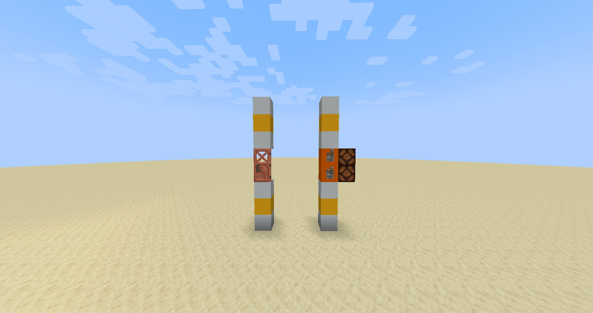 Place two blocks above and below a door as shown in the left side of the screenshot (the right side uses levers for comparison purposes)
