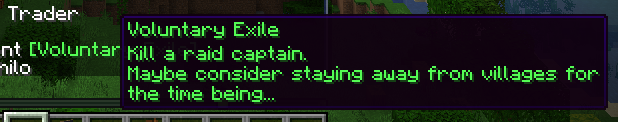 Now that killing a Raid Captain no longer directly gives the Bad Omen status effect, and therefore no need to stay away from villages for a while, the "Voluntary Exile" advancement seems somewhat outdated.
