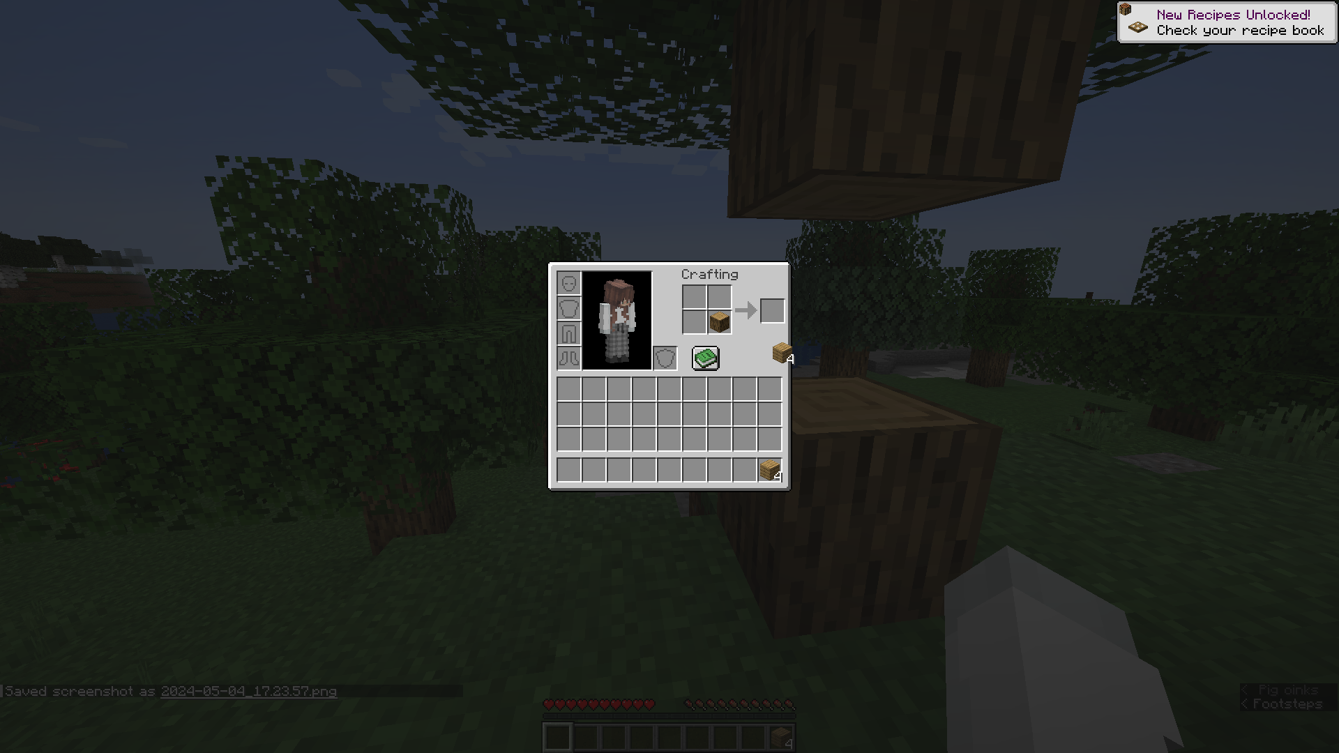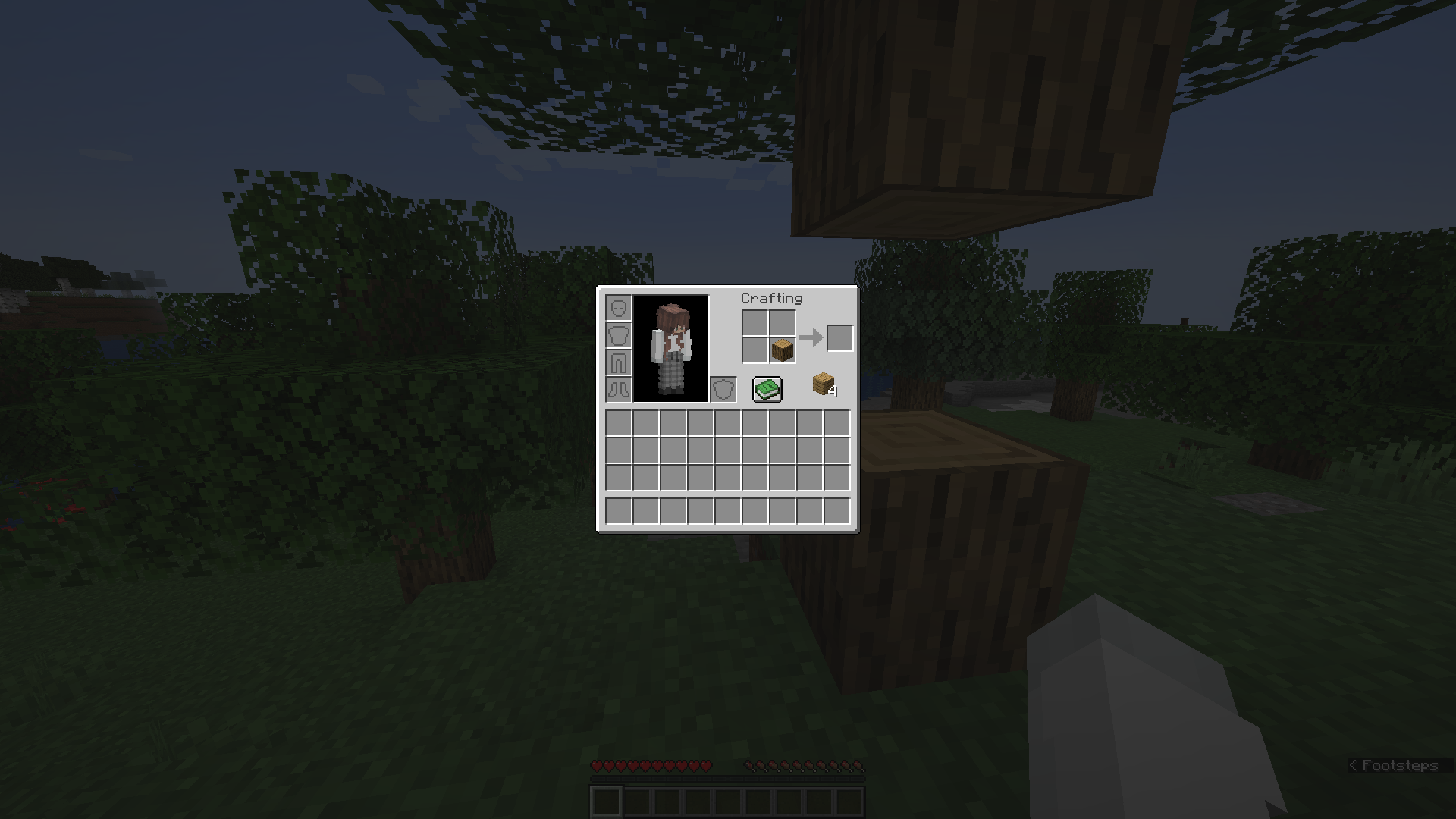 3. Log should remain in the inventory crafting menu