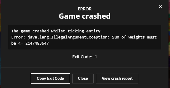 When an enchantment has a big weight (close to Integer.MAX_VALUE), adding other enchantments' weights will make the total exceed the integer limit, causing a crash.