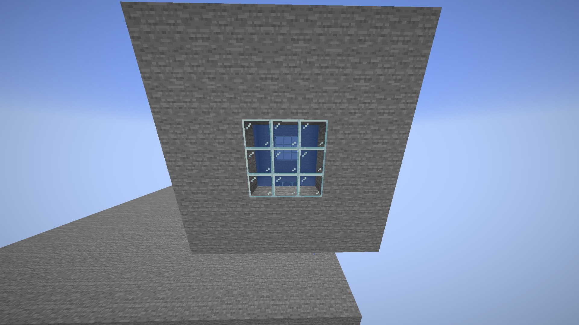 Build a hollow stone cube with glass windows (example world provided)