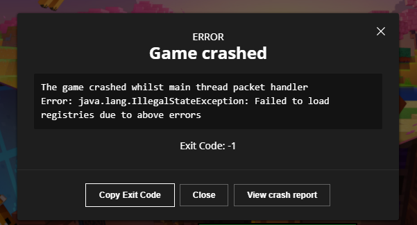 at net.minecraft.client.main.Main.main(SourceFile:256)Registry loading errors: