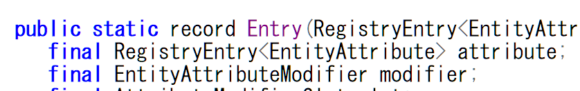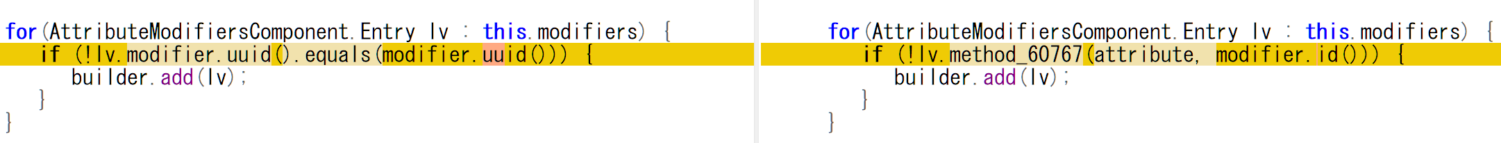 In AttributeModifiersComponent.Entry, an Identifier is compared against EntityAttributeModifier, which always returns false. This makes the check inside AttributeModifiersComponent#with, which should skip duplicate additions, useless.