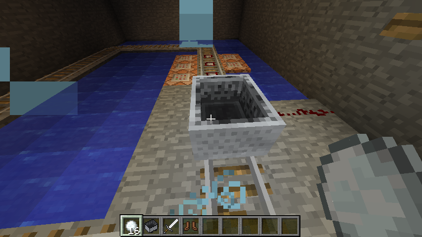 When a Minecart, if you throw a snowball at the cart, it will destroy it, and you will sink shoulder-deep in the ground. You have to jump up to get un-stuck. This occurs while the cart is on rails, and you are in creative mode. I have repeated this, and it works every time. I have attached step by step pictures.