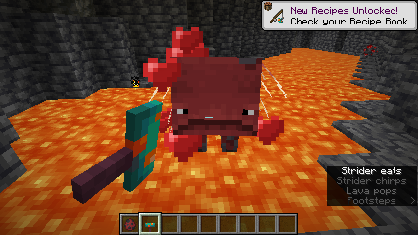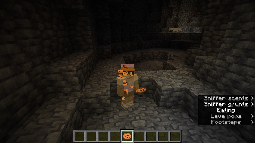 When feeding certain mobs, subtitles will be displayed indicating that a sound is playing representing that specific mob eating. However, when the player is eating, the subtitle is "Eating", rather than "Player eats".
