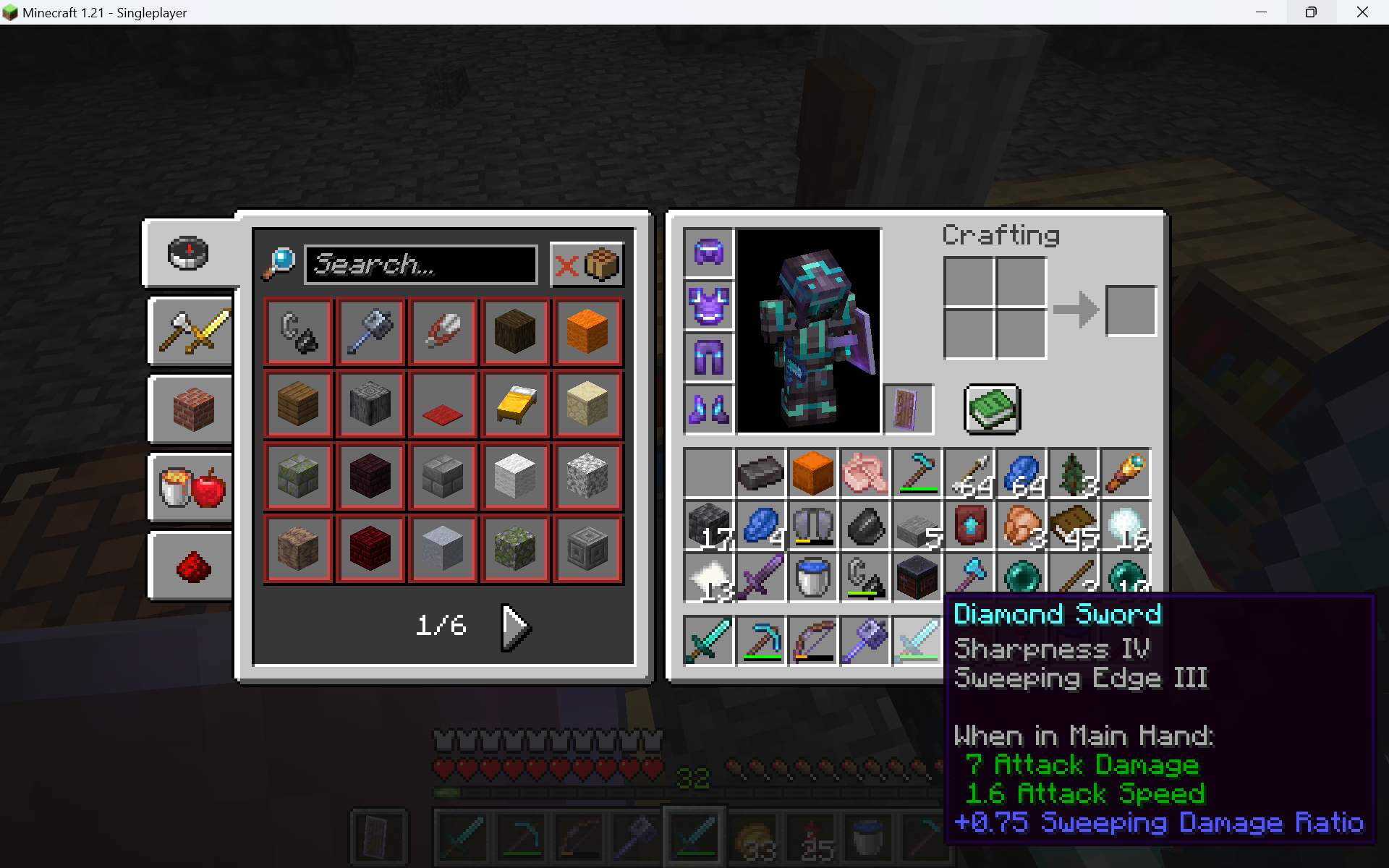 The sharpness enchantment is not adding any damage in 1.21, in my survival world. I checked with damage on mobs and it deals the same damage as an unenchanted weapon. This is the case for a diamond sword: