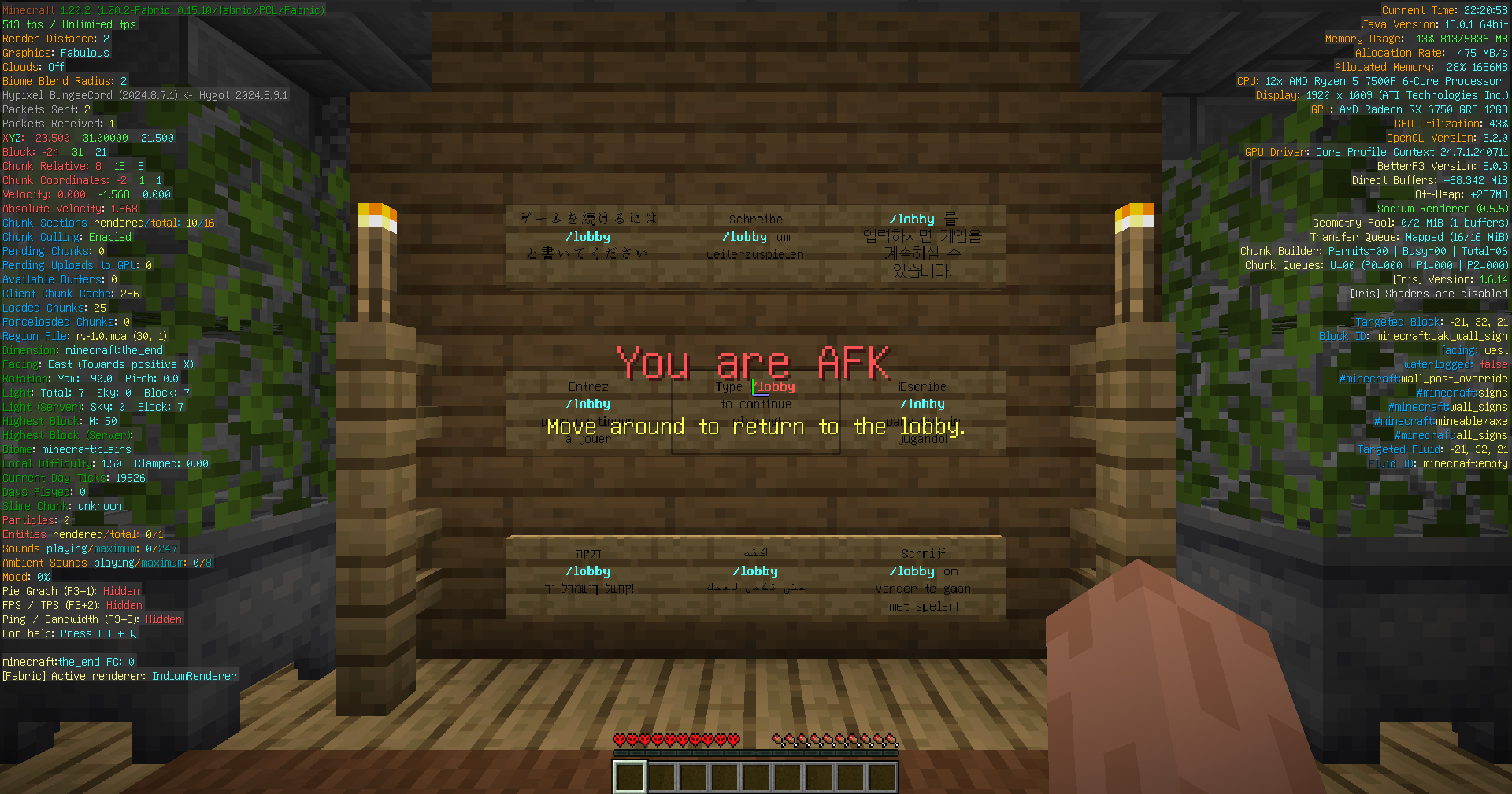 I am playing Minecraft Hypixel server and when I exit the game in the idle lobby and enter single player mode, the afk flag on the Hypixel server still exists