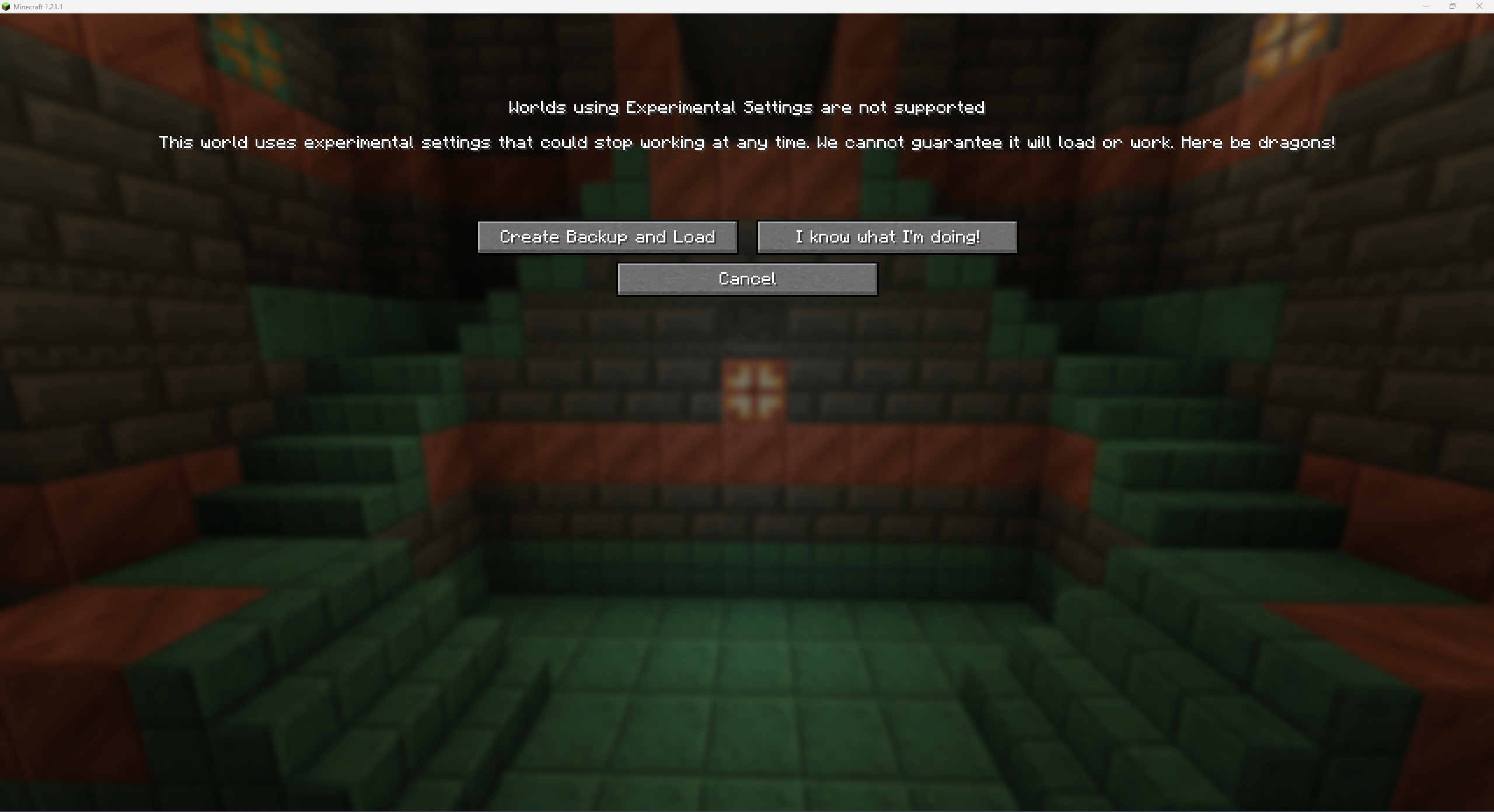 When adding a custom banner pattern to a world through a data pack, the player is prompted with the message: "Worlds using Experimental Settings are not supported" when opening the world.