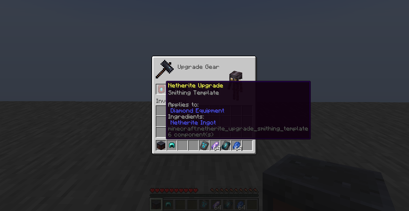 When combining a diamond armor, tool or weapon with netherite using a netherite upgrade smithing template, the resulting item won't inherit the smithing template rarity, Uncommon.
