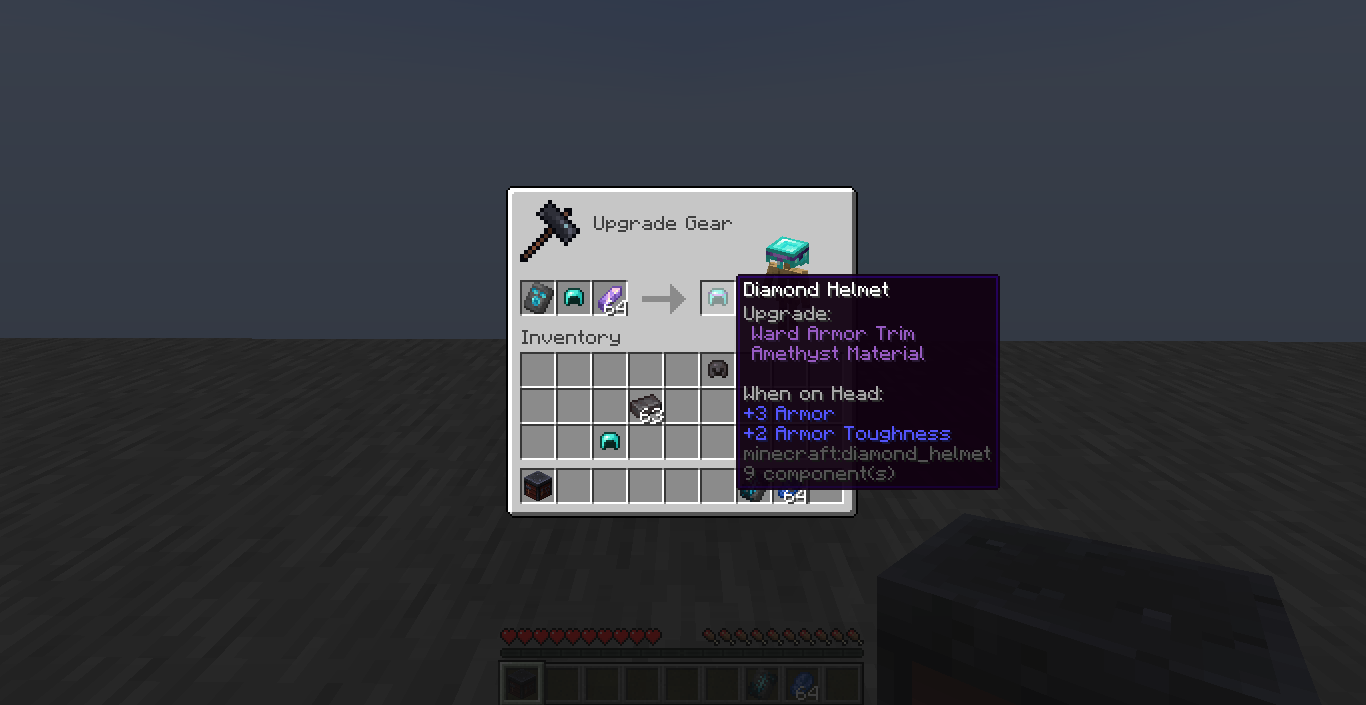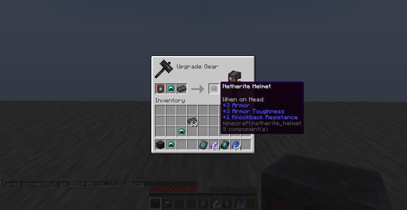 The resulting item would inherit the rarity of the template or material. The netherite gear would have uncommon rarity.