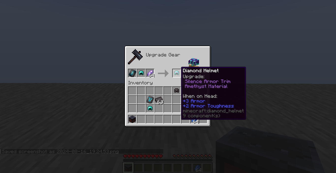 In the same way, applying an armor trim to any gear from a smithing template such as Silence won't inherit said trim rarity color, in this case Epic.