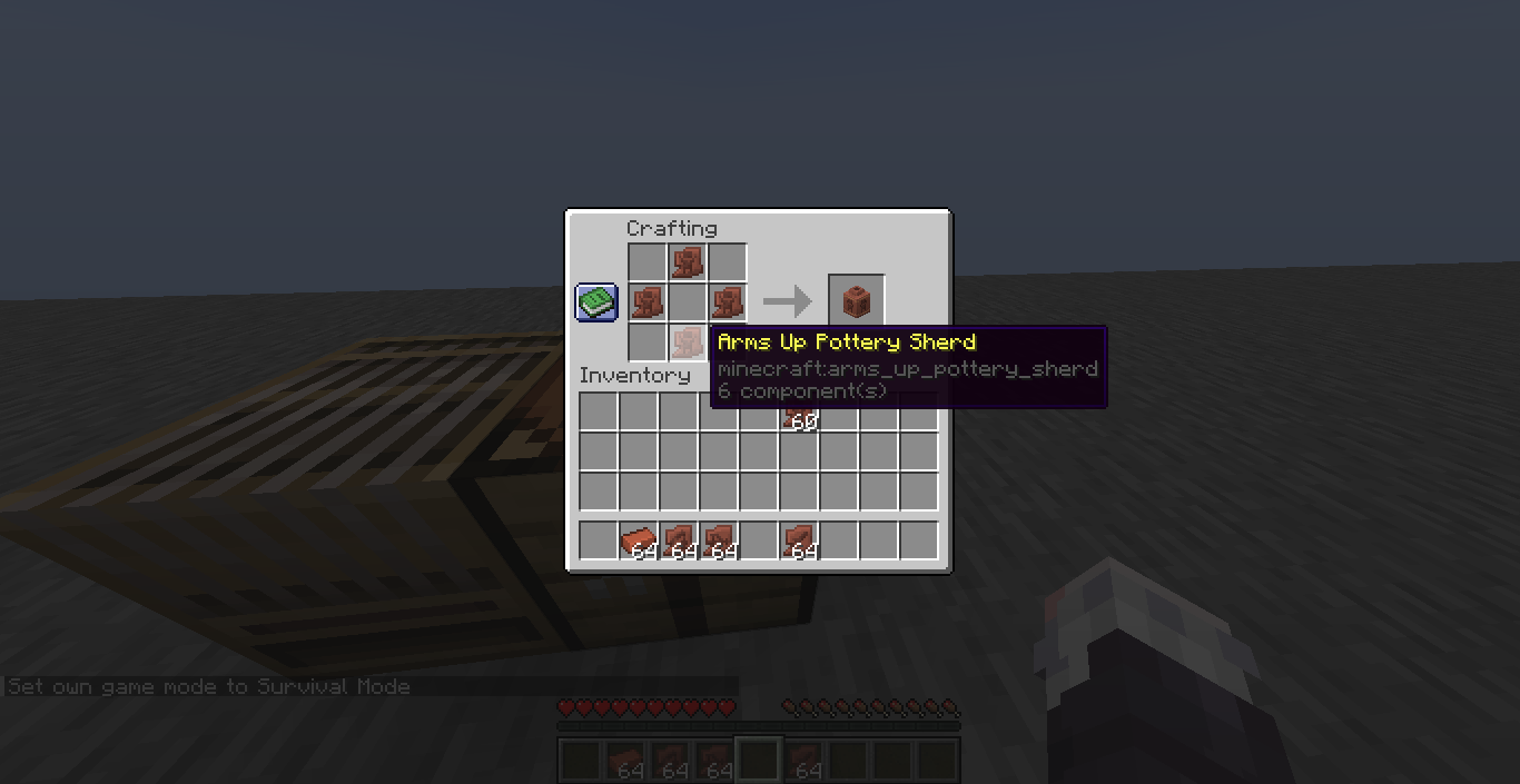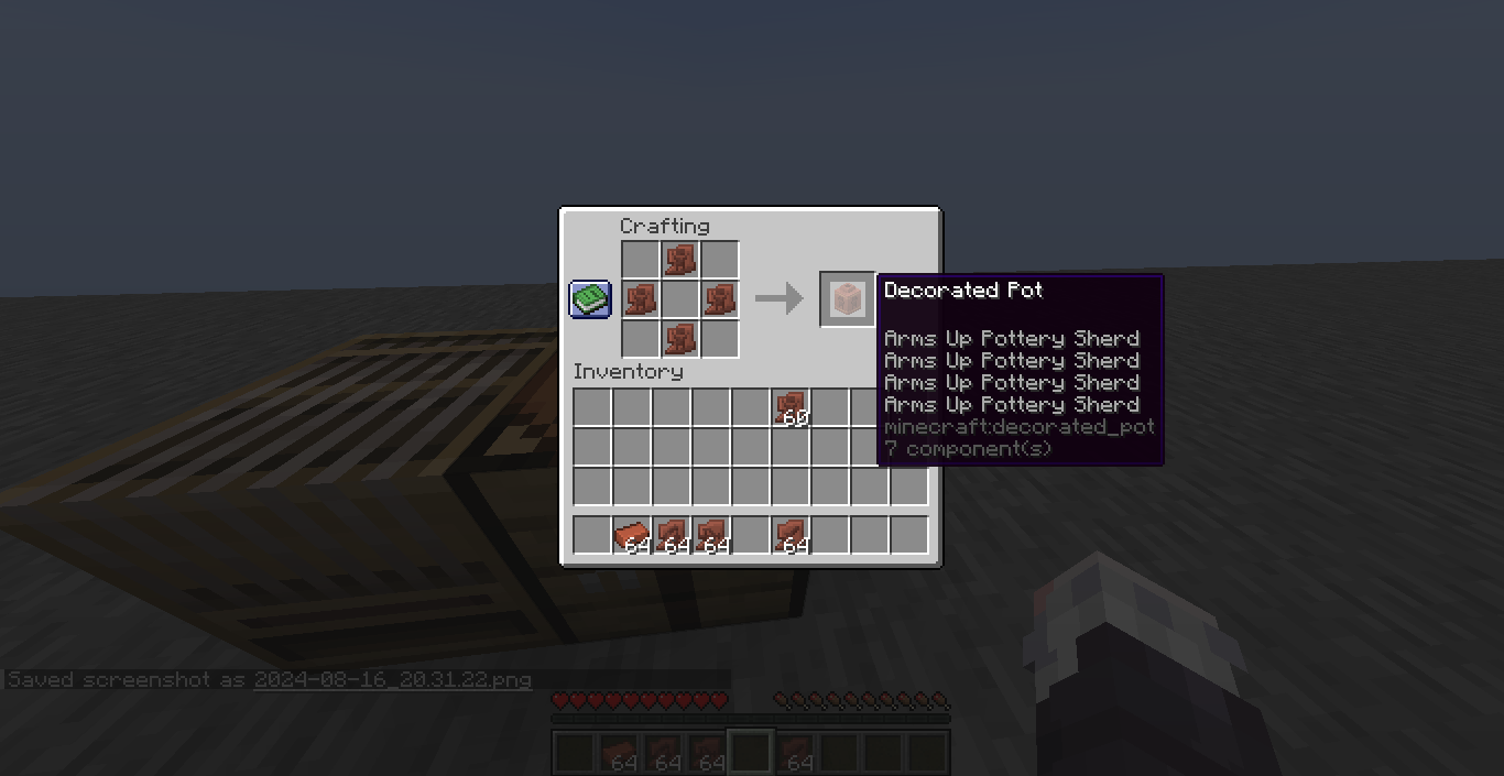 Decorated pots that can be crafted using pottery sherds (which have uncommon rarity) won't inherit said sherd rarity. Same would probably apply to decorated pots found in trial chambers.