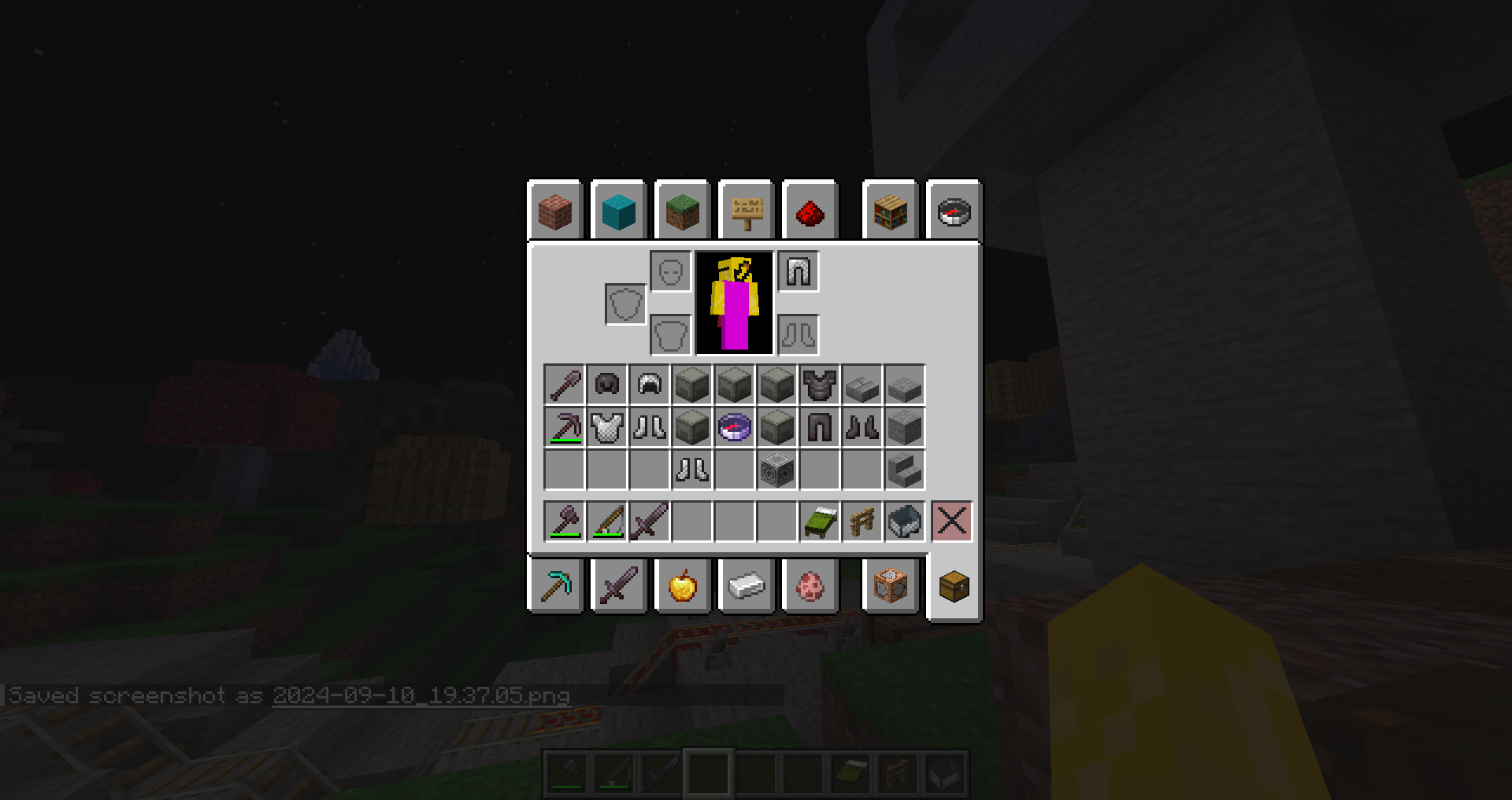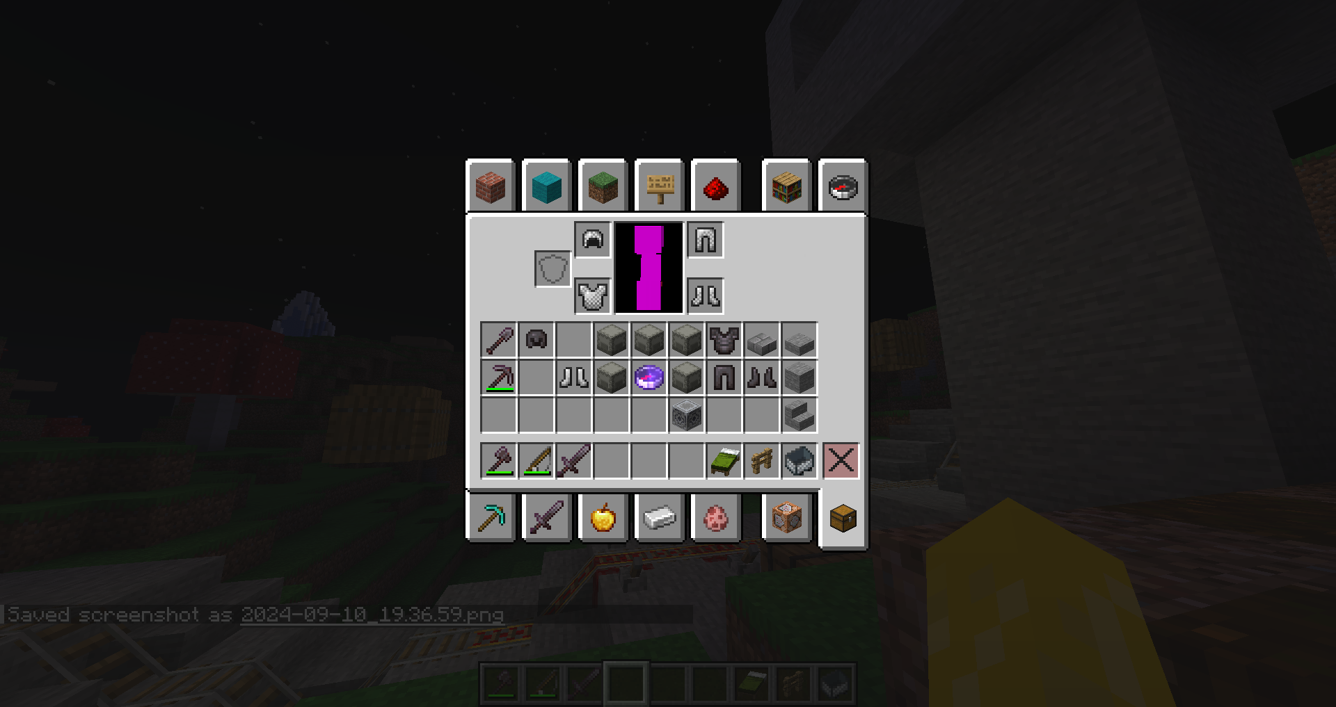 3. Press F5 or view inventory to view black and purple texture.