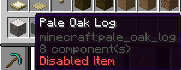Pale garden features can be placed using /place even when the Winter Drop experiment is disabled, allowing a player in Creative mode to obtain disabled items.
