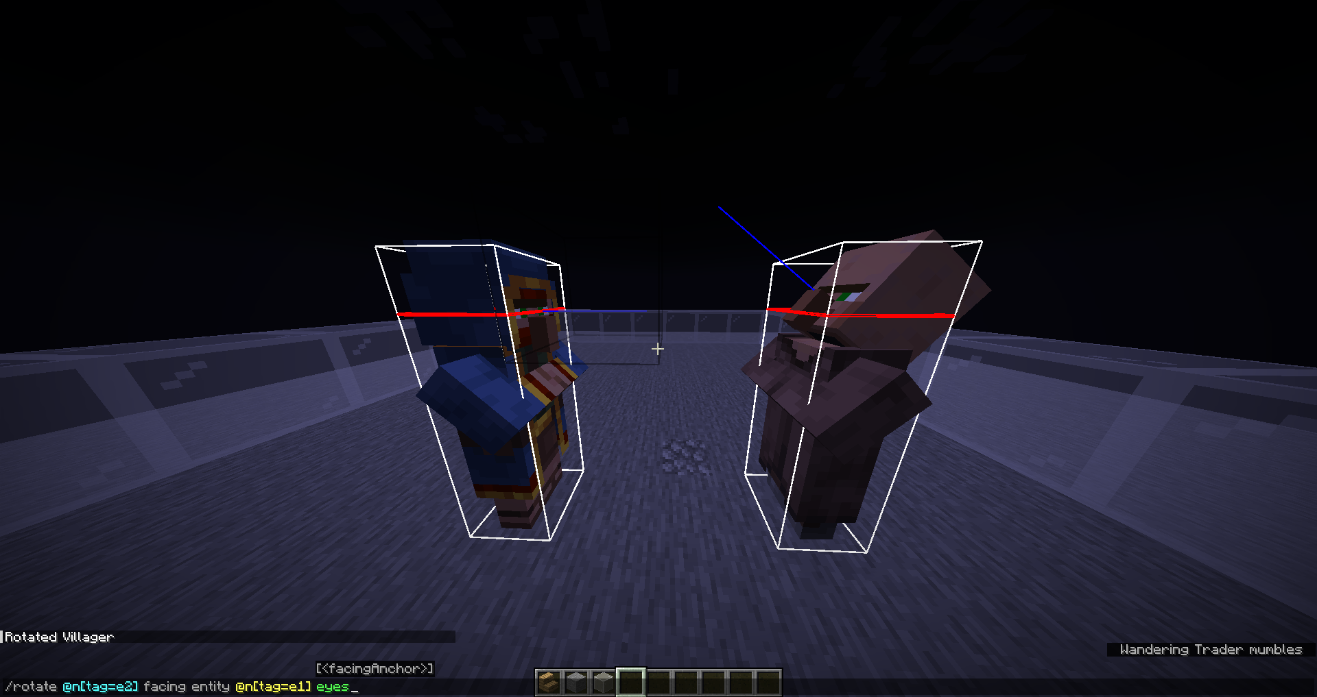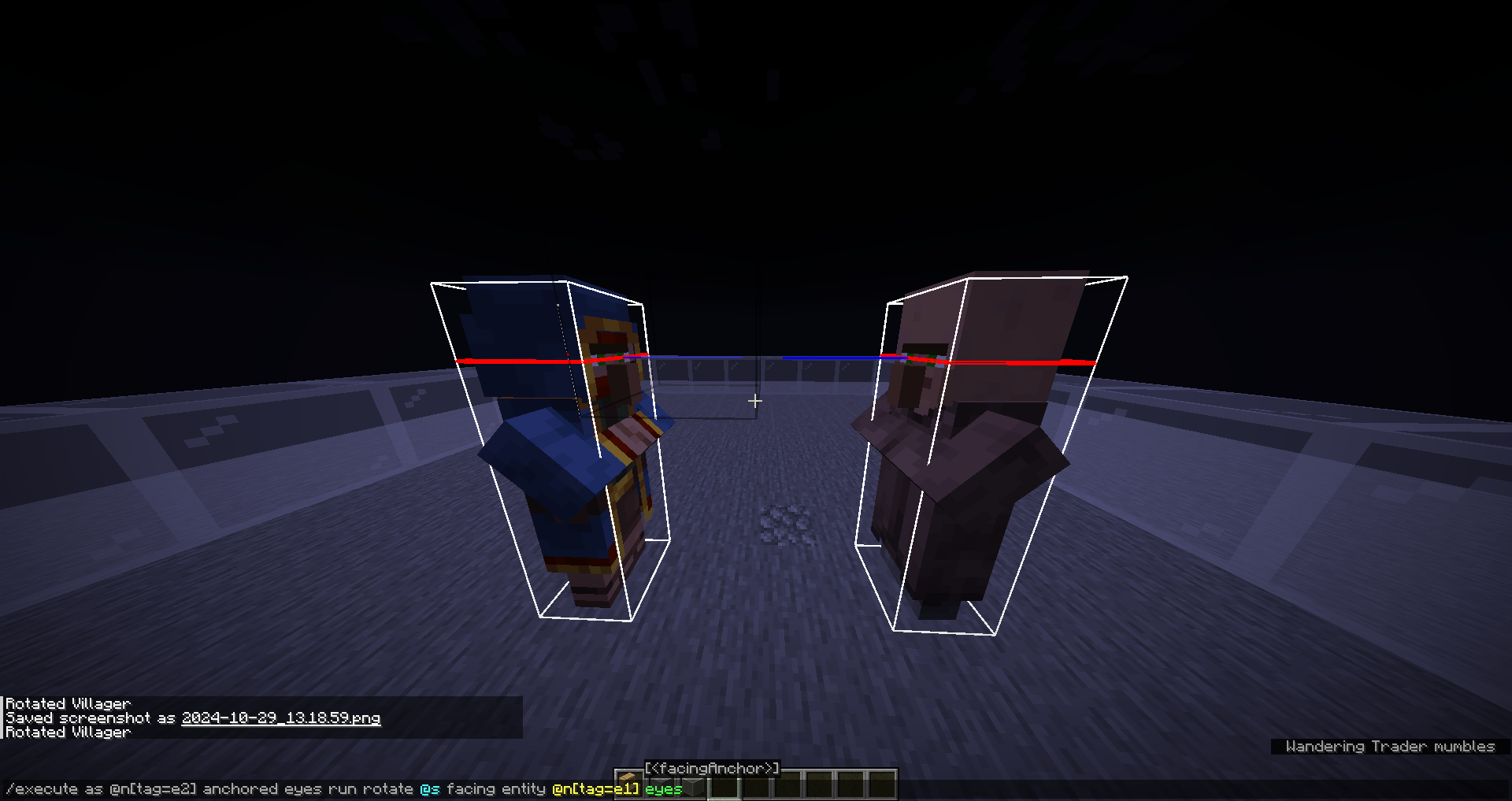 rotate @n[tag=e2] facing entity @n[tag=e1] eyesThe expected result would be the wandering trader looking at the player's eyes, and the villager looking at the wandering trader's eyes. But they look much too high. (See attached screenshot).