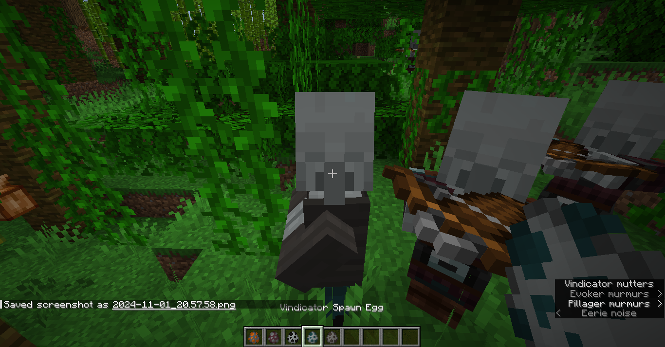 2) Spawn a pillager , vindicator, evoker, ravager & a vex using a spawn egg or summon command.