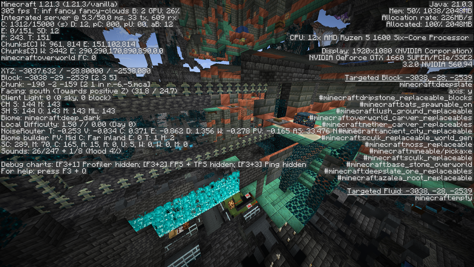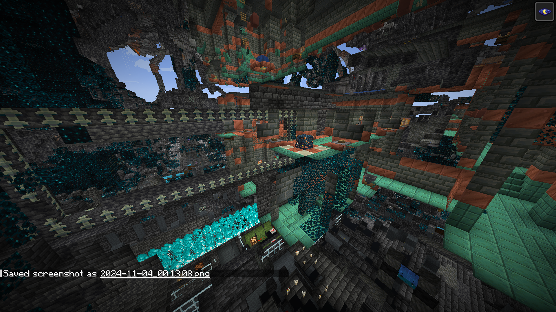 The Trial Chambers appeared in the center of the Ancient City structure. (An experimental Winter Drop update has been enabled in the world) The game is launched through the standard Minecraft launcher.