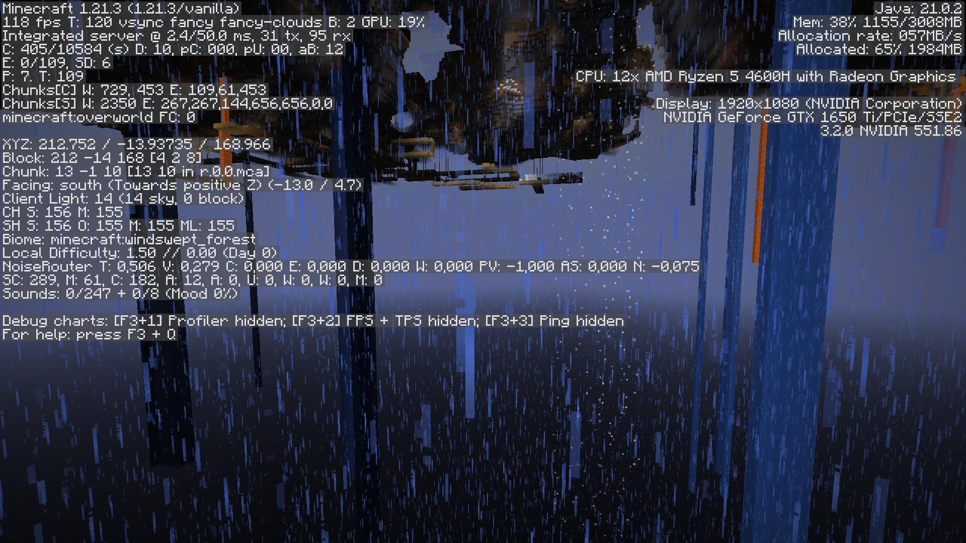 In worlds created in the "floating islands" mode, where the biome is selected as one of the biomes where snowfall begins above a certain height, when updating these worlds to version 1.21.2 or 1.21.3, the snowfall boundary is at about 128 blocks lower than it should be.