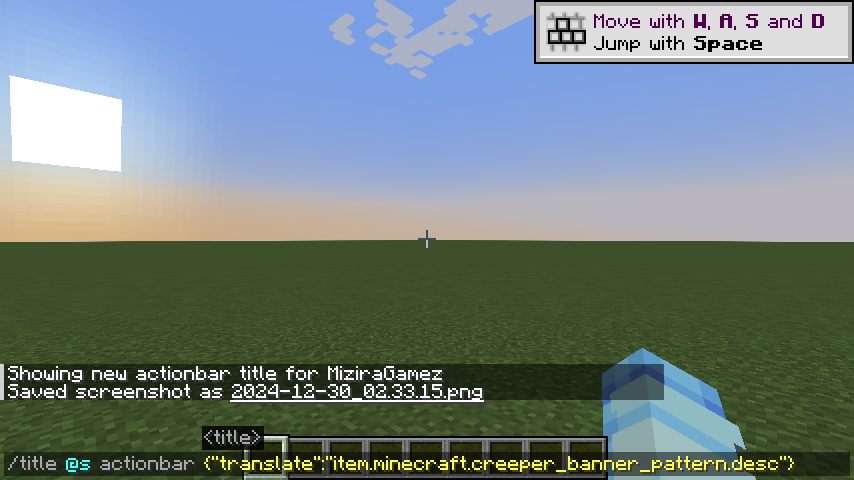3. Type the command `/title @s actionbar {"translate":"item.minecraft.music_disc_otherside.desc"}` .