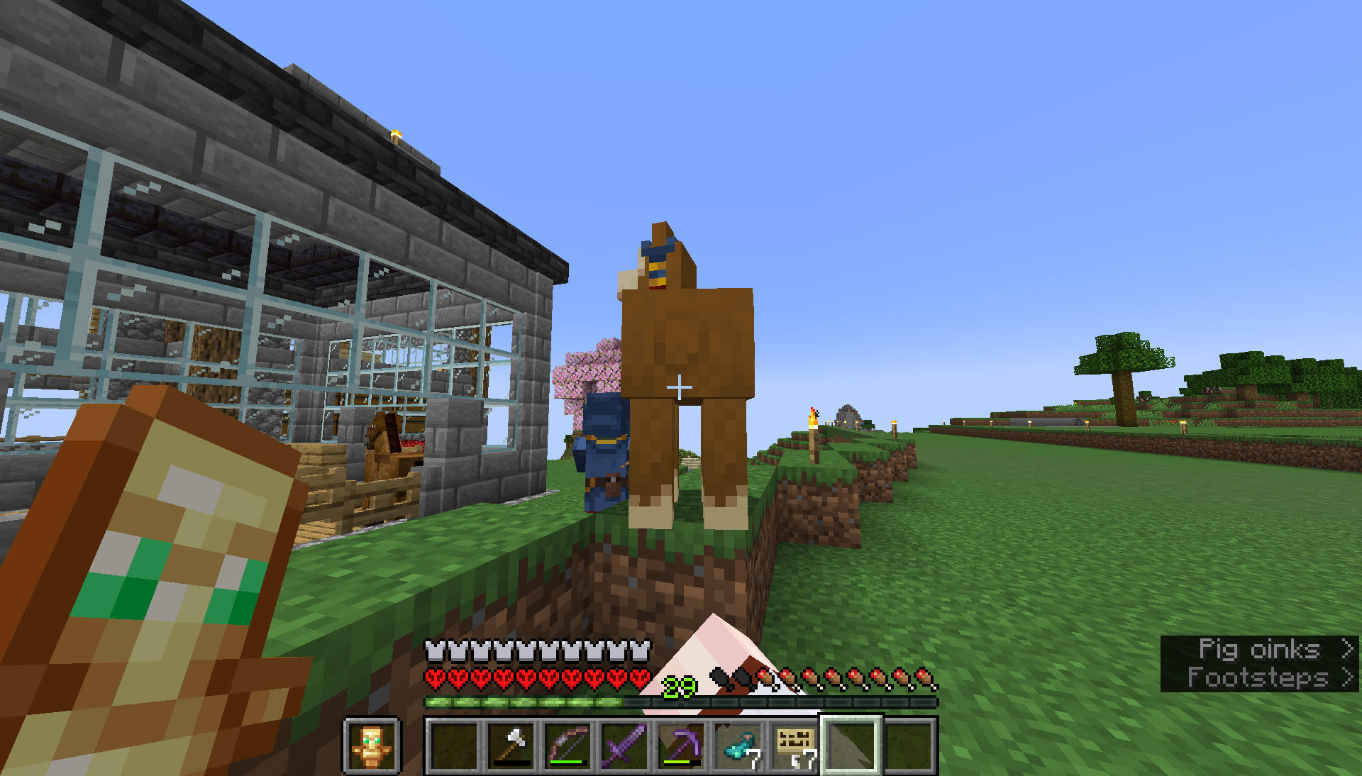 The sound plays because the player cannot mount horse variants or llamas when they are holding an item, the audio queue is to relay that to the player. This is intentional.