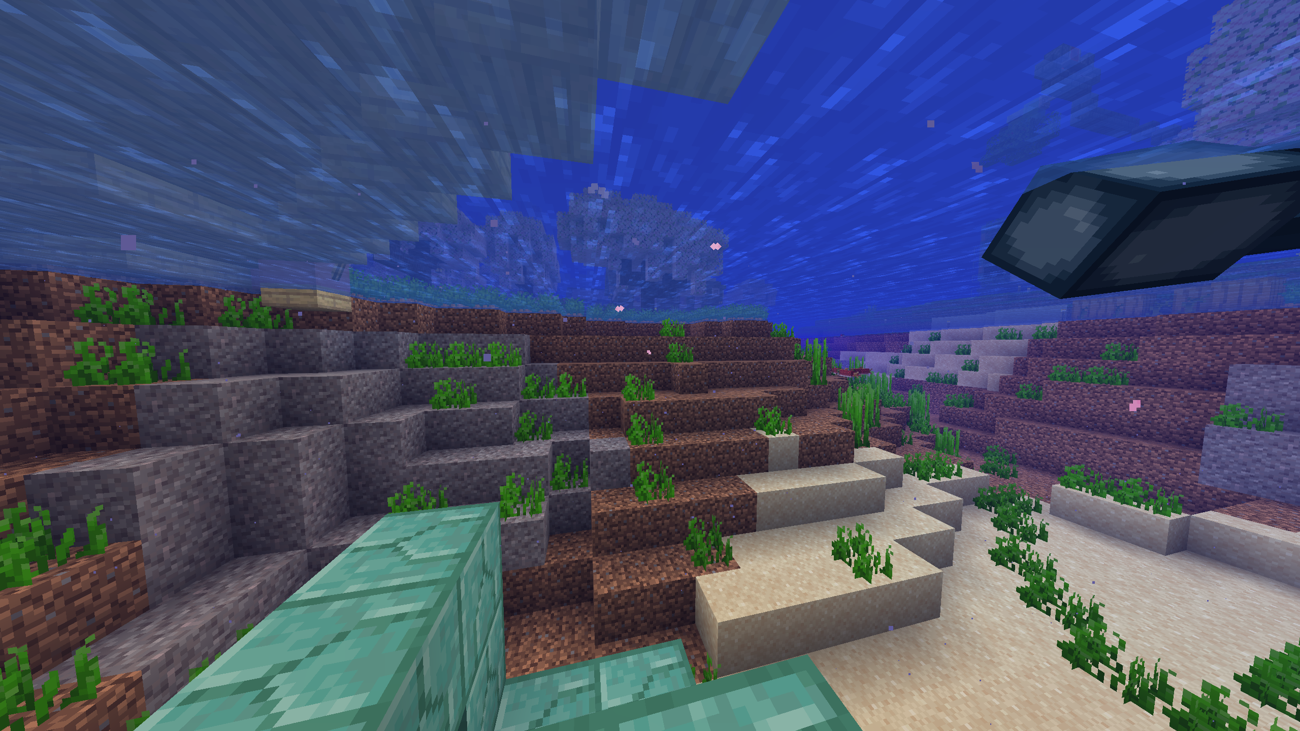 When a cherry blossom tree is near a body of water and the player is underwater nearby, the falling leaves particle effect flows through the water as if it were air blocks.