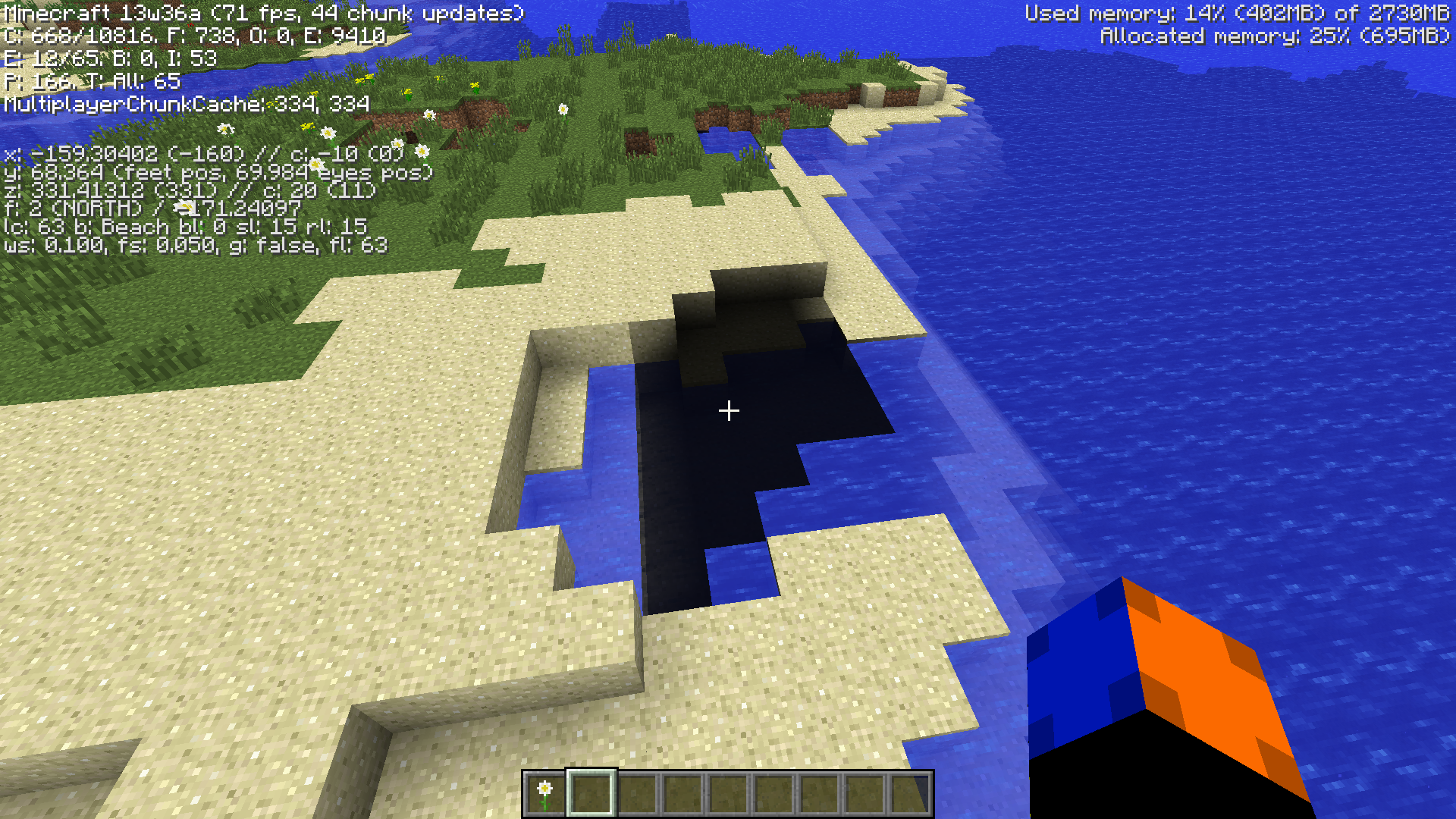 5. Watched affected areas as they loaded on an SMP server; they all seem to have boundaries matching edges areas that are loaded at a time. I'm not saying "chunks" because one of them is directly ABOVE unaffected blocks (flat vertical wall, glitched on side face), and visibly loaded AFTER the lower portion of the wall. Are chunks no longer full height, or do chunks load in sections from bottom up? If they're not explicitly being loaded in vertical sections, are they loading partially due to multiple chunk loading threads, or possibly packet transmission sections (would assume full chunks for each packet, but...)?