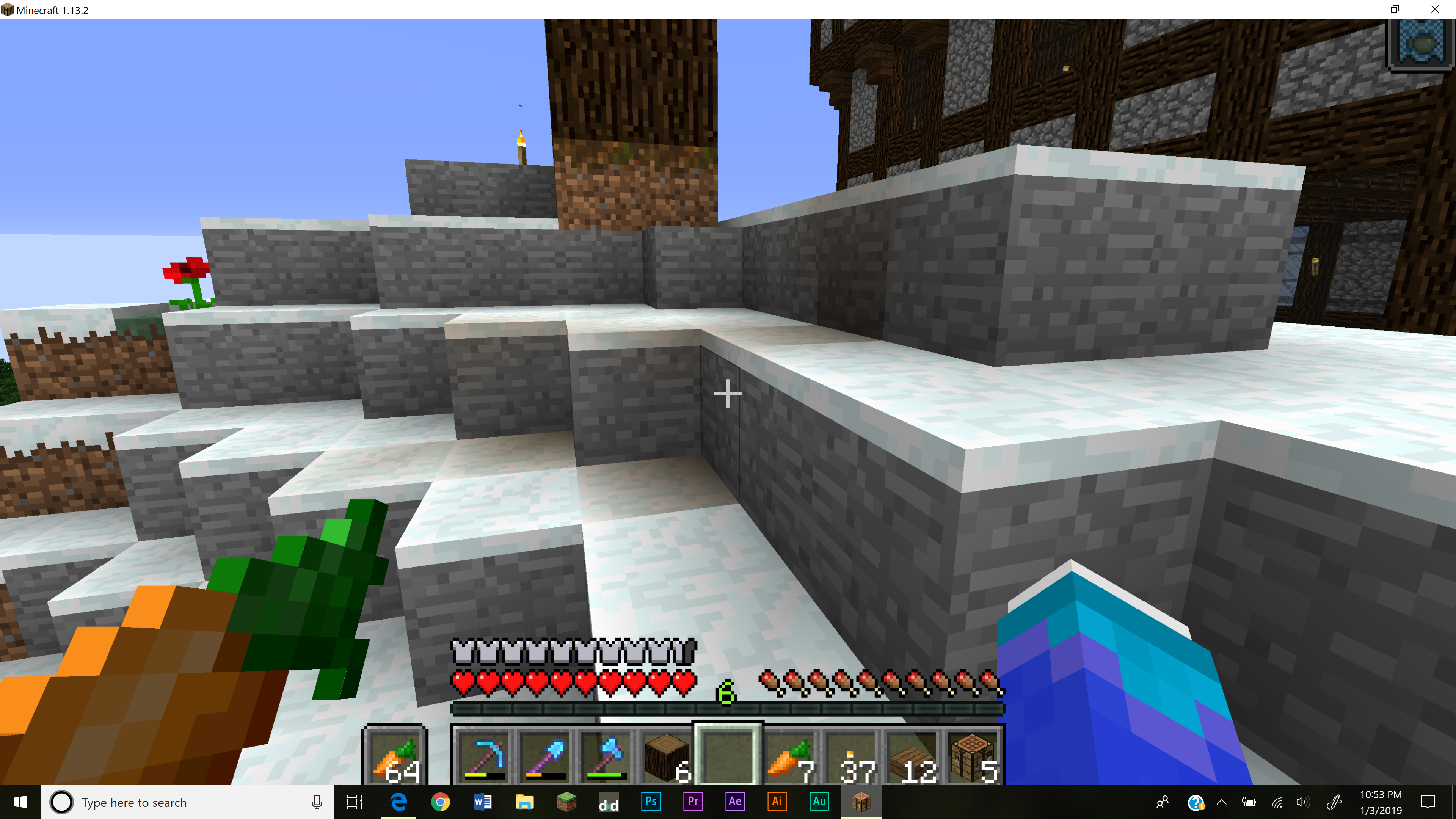 3;minecraft:bedrock,54*minecraft:stone,minecraft:iron_block,minecraft:stone,minecraft:log,2*minecraft:dirt,minecraft:grass,6*minecraft:air,minecraft:lit_pumpkin;1