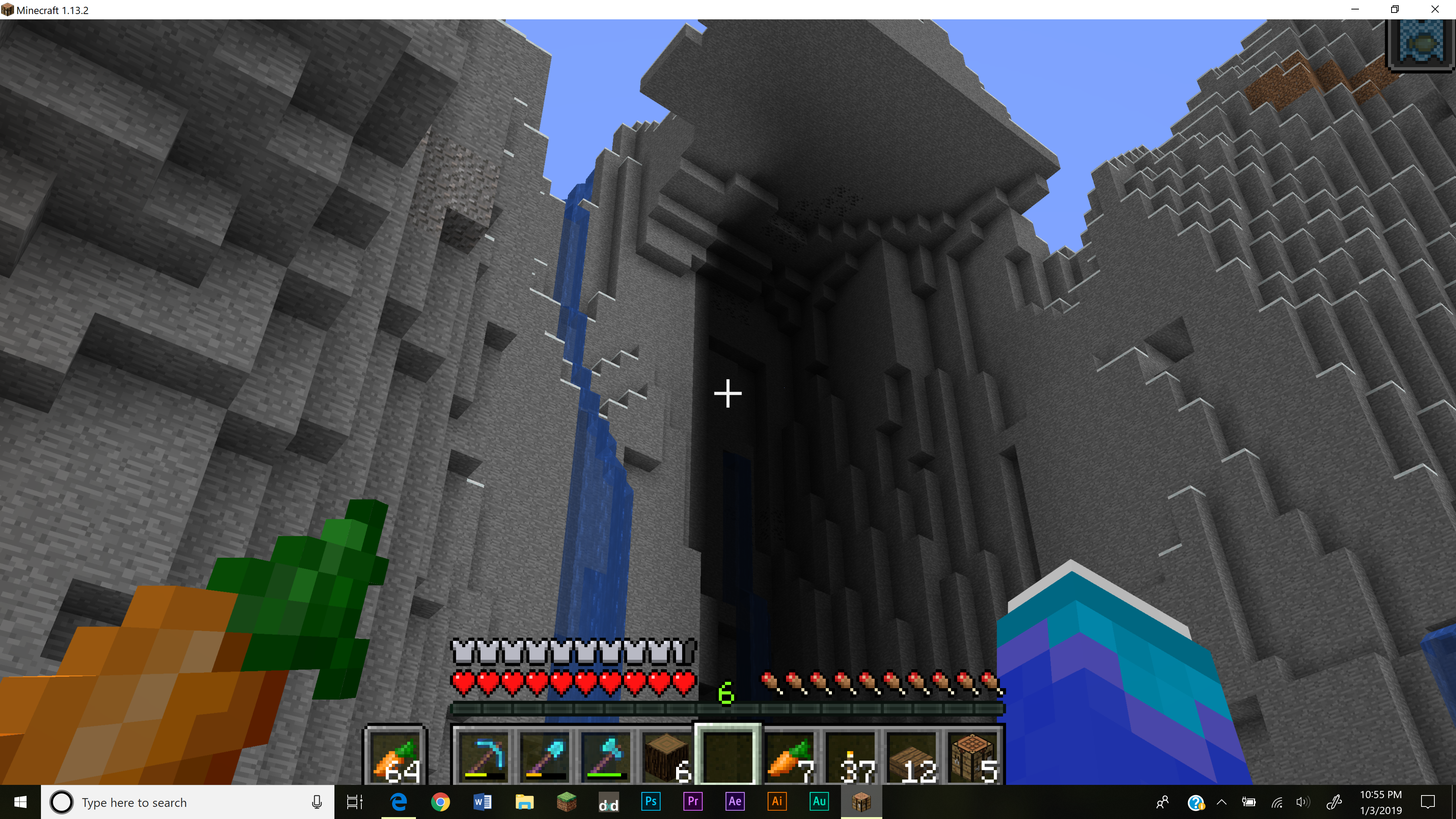 3. Noticed edges of a glitched areas were at a chunk boundaries (in their found state, not after adding blocks as mentioned in #2), but not necessarily in a single chunk (some extend through multiple chunks). There are some exceptions though...I think I noticed an organic shape in one area...
