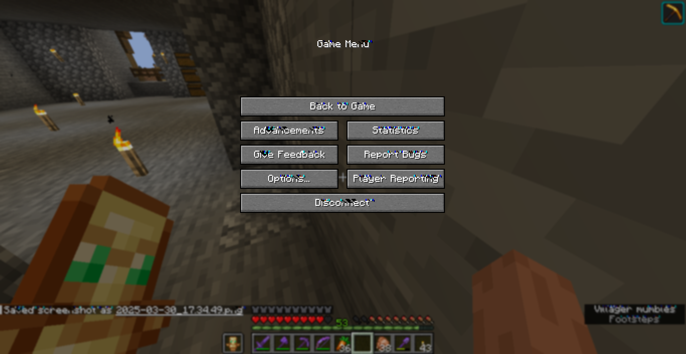 dopo aver aggiornato a Minecraft 1.21.5, ho notato che in tutti i testi del gioco appaiono piccoli pixel colorati che non dovrebbero esserci. il problema si verifica pochi secondi e non riguarda solo il menu, ma anche i testi in gioco, come chat, cartelli e altri elementi scritti. non sto usando OptiFine, texture pack o mod. ho provato a cambiare le impostazioni grafiche, si levano ma poi ritornano dopo un po' di tempo.