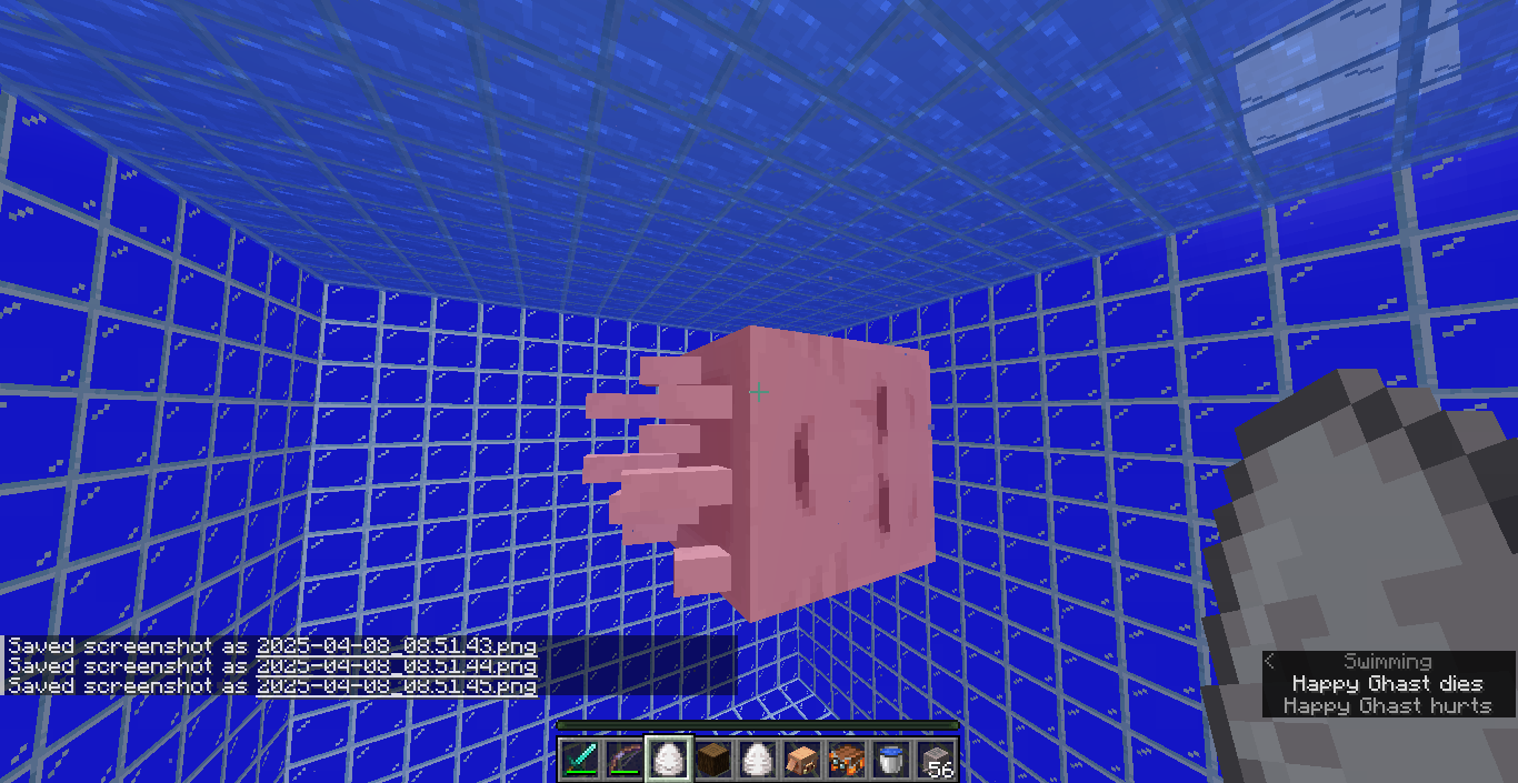 Happy ghasts are able to drown underwater, despite ghastlings not able to.