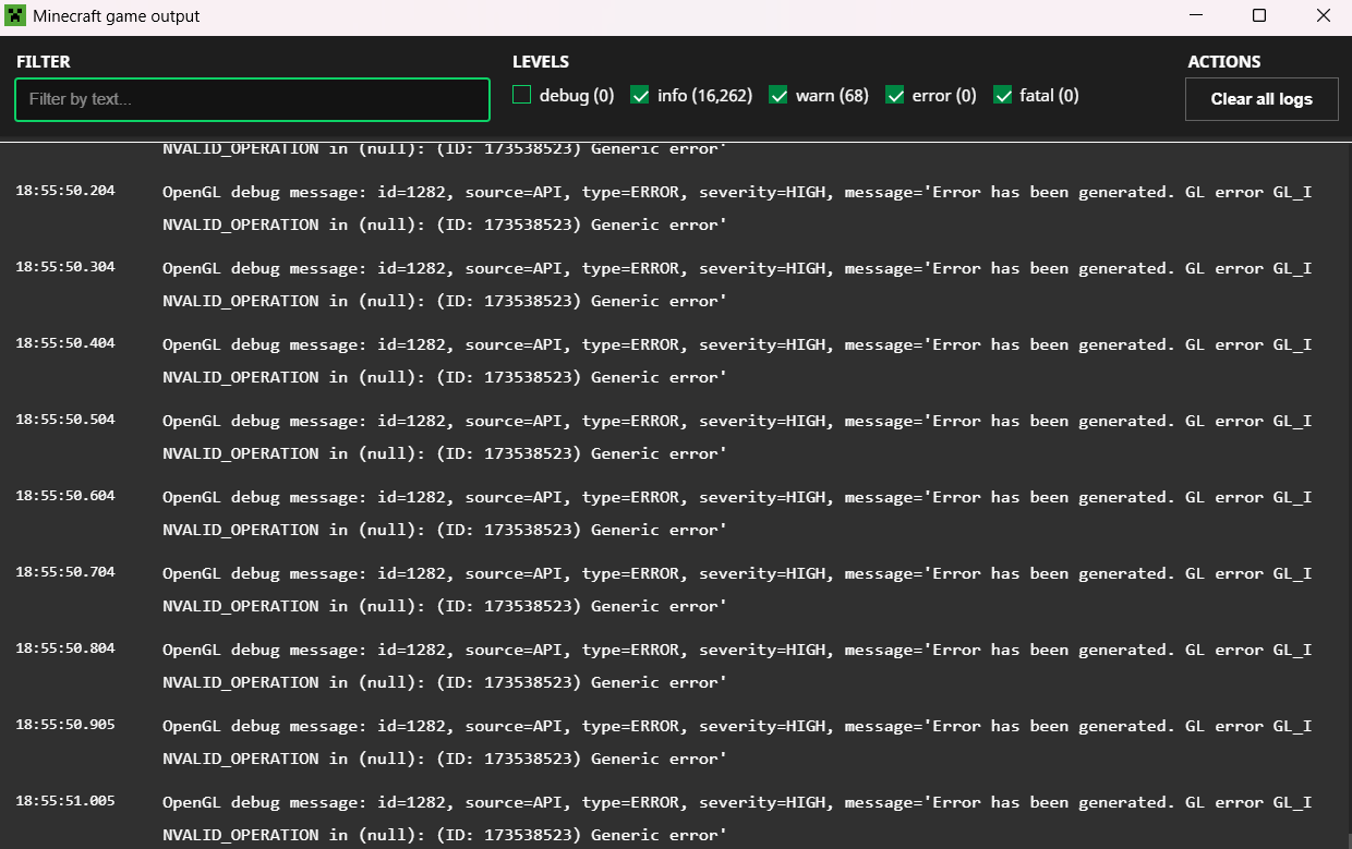 - Thousands of OpenGL errors get logged to the console