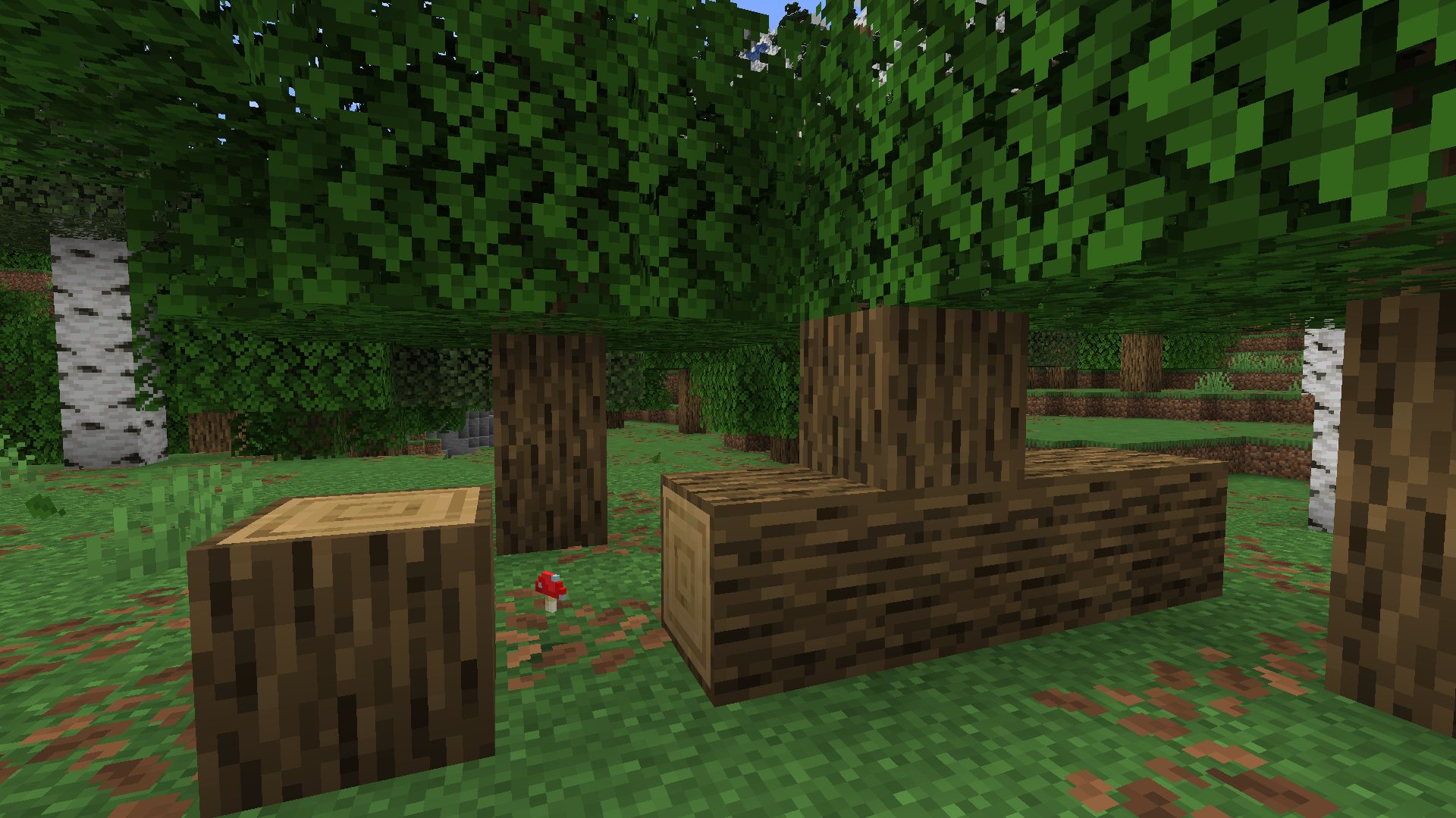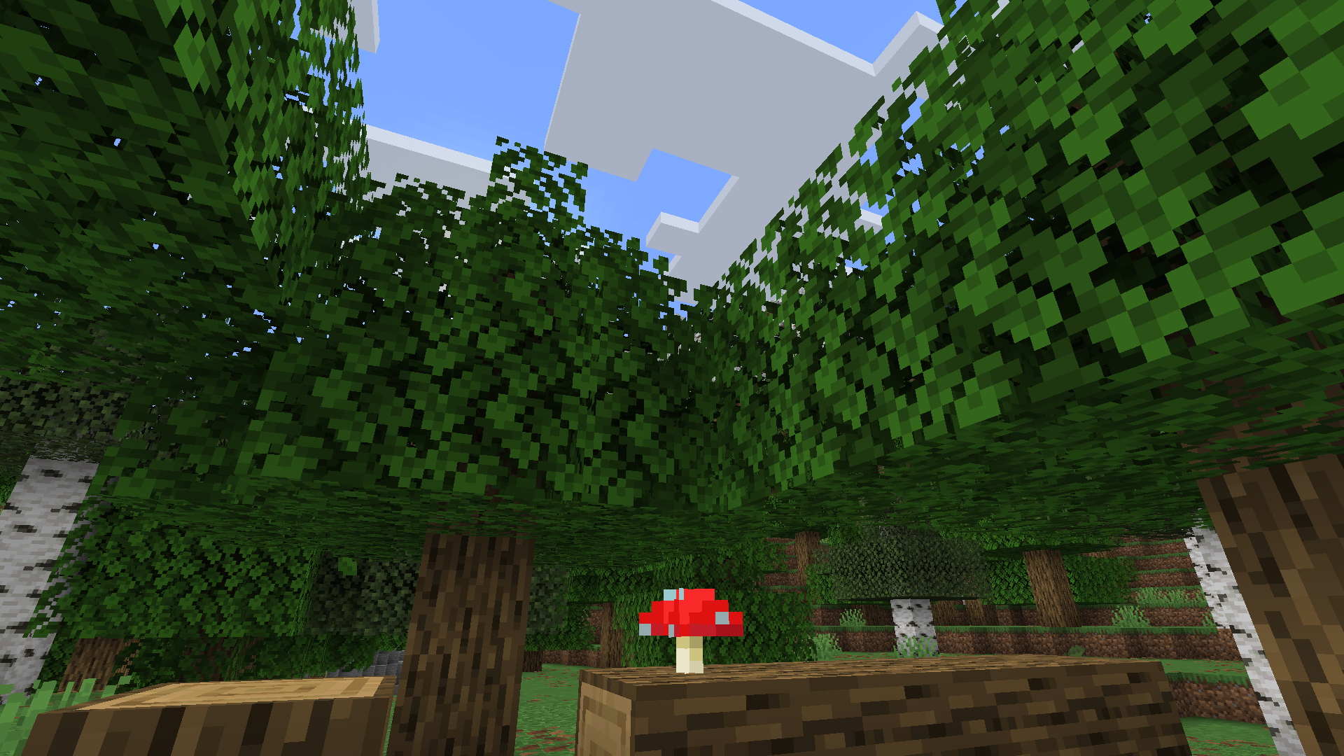 Mushrooms can generate as part of fallen trees, where they are placed on logs. They are usually found under direct access to skylight, thus not abiding by the usual placement rules. This leads to unexpected behavior, such as mushrooms breaking when a block is placed next to them (the mushroom is “updated” and realizes it’s placed in an invalid location, and thus breaks). Players are also unable to replicate these features as they can’t freely place mushrooms on logs as the world generator does.