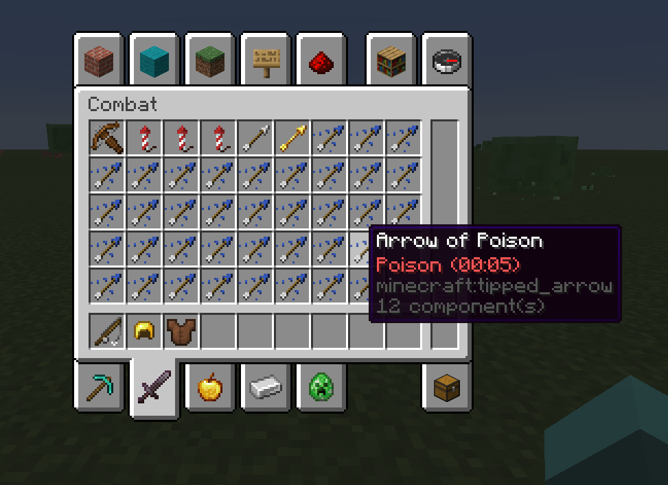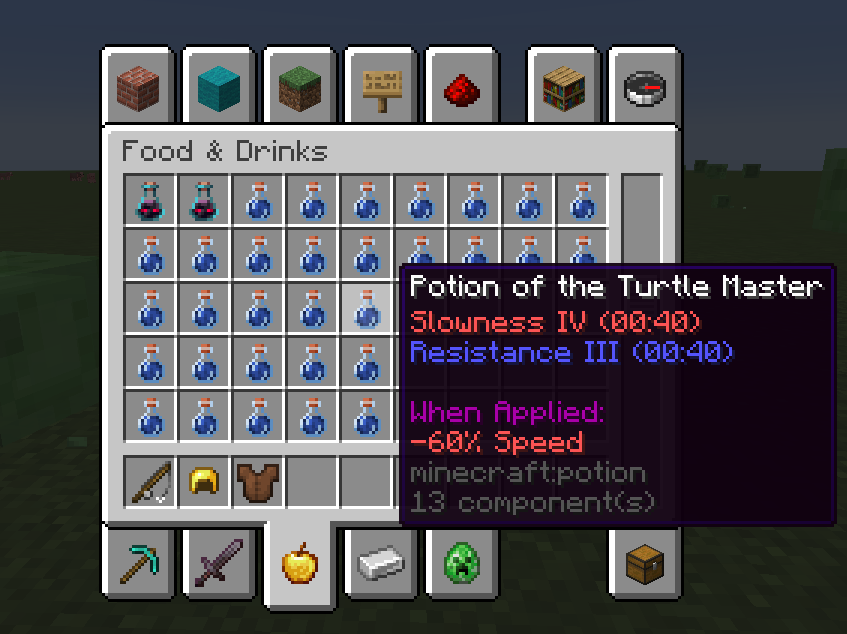 How to recreate: Go into creative and look at the “Combat” and “Food & Drinks” tabs.