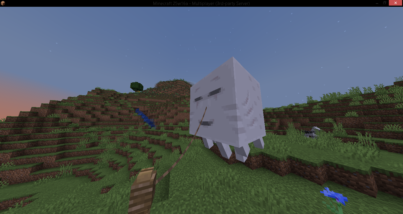 The leash is attached to the happy ghast’s face.