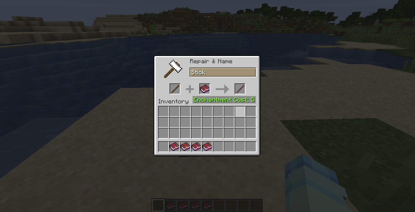 Generate a world with the datapack included in a comment (contains an enchantment with anvil cost 0, applicable to a stick).